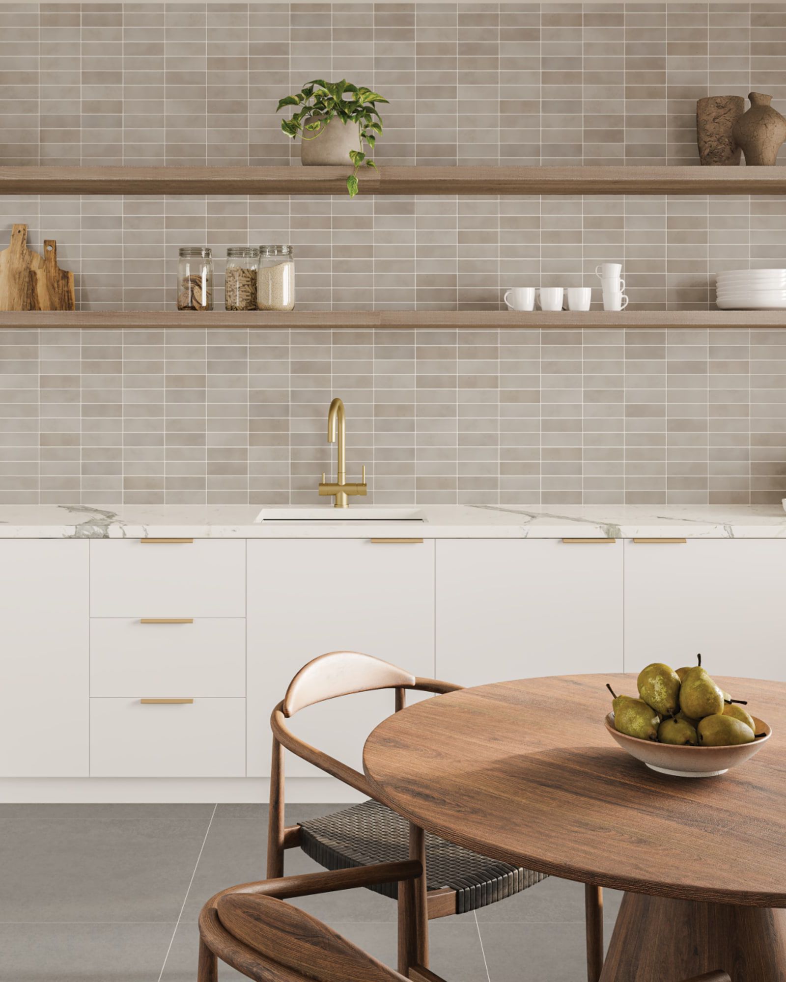 Inspired by the rustic beauty of the French countryside, the Bedrosians Celine Taupe Matte Porcelain 2"x6" Tile Collection blends old world charm with modern day versatility. Made of highly durable, low maintenance porcelain, Celine is perfectly suited for walls, floors and even outdoor uses like swimming pools. But the real appeal is in its looks, which offer a range of understated colors and graceful sizes that pair with any style scheme. And with slight tonal variations from tile to tile, Celine exudes a handmade, artisanal quality that’s simply chic.