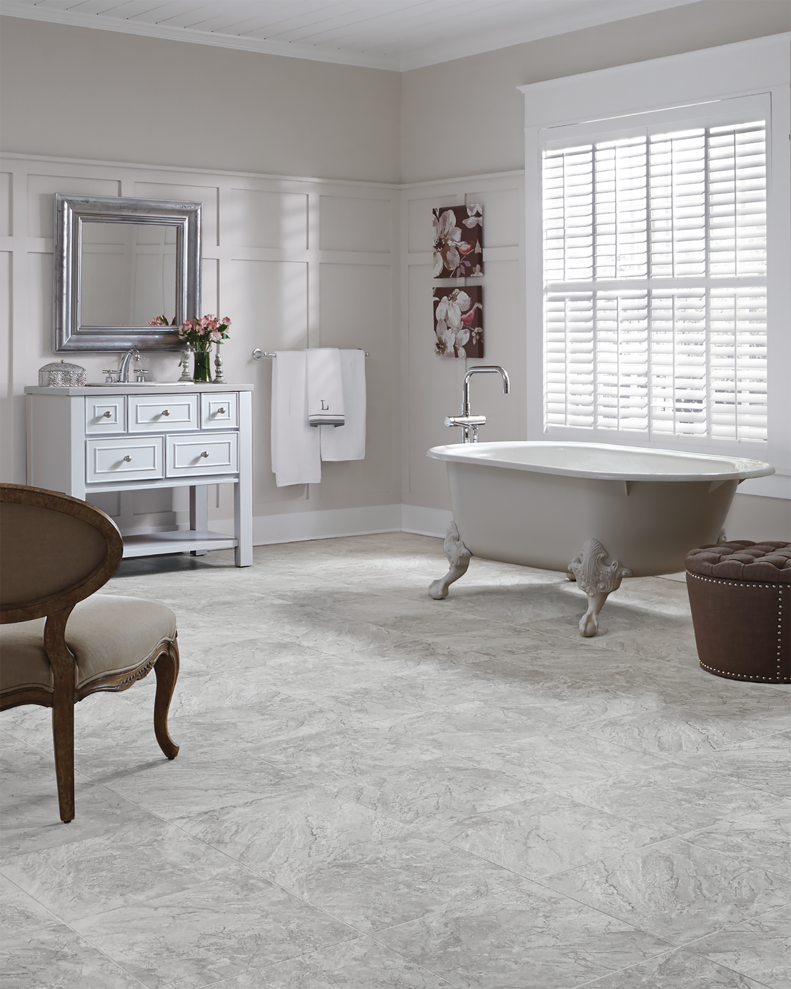 | Description | The classic elegance of marble is reflected in the Mannington Adura Flex Tile Century Pumice Luxury Vinyl Collection. Through its smooth, honed surface texture comes a beauty that only marble can offer. It's scratch resistant, waterproof, and comes with Microban technology designed to keep your floors clean. Complete with a Lifetime Residential Warranty. |