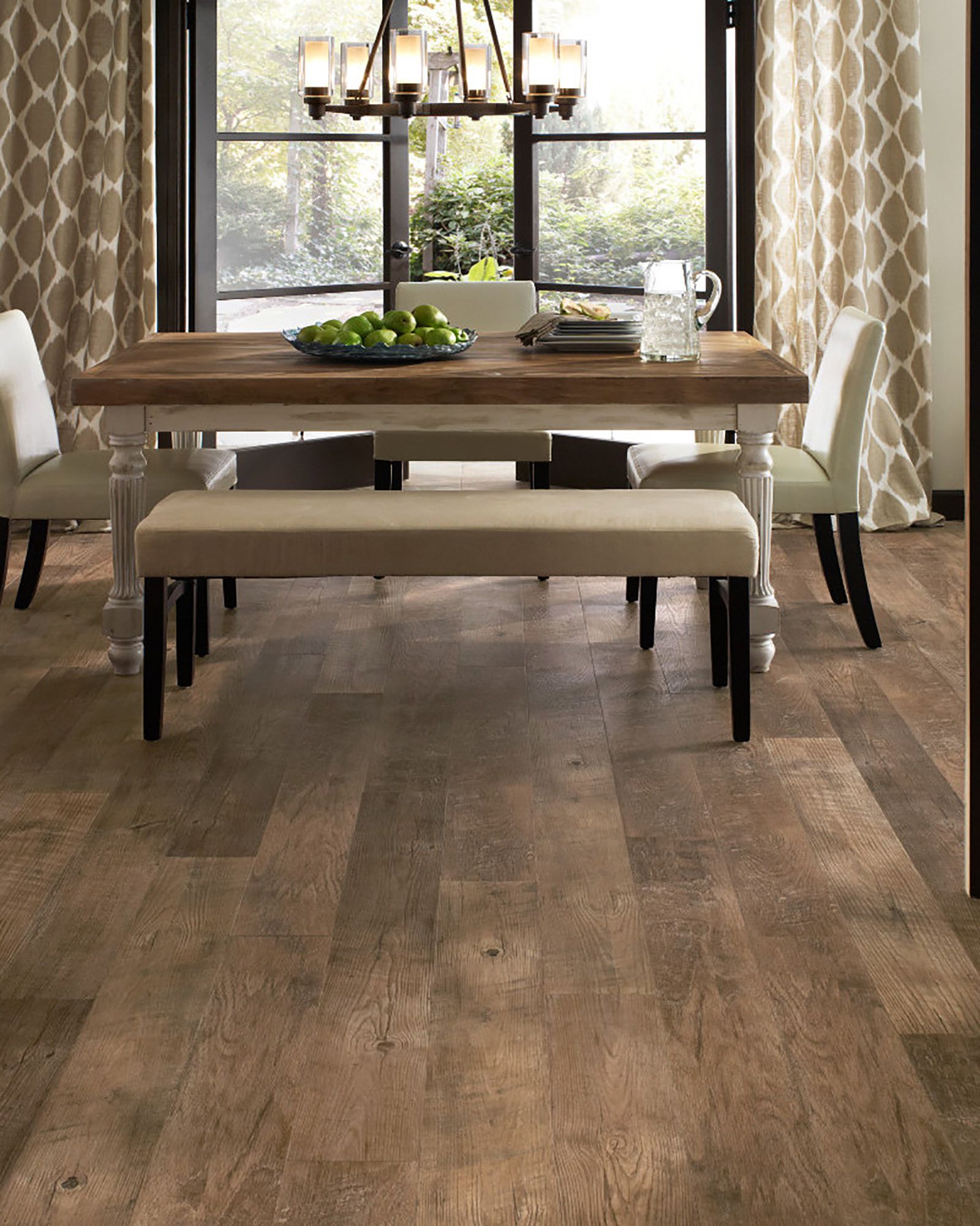 | Description | With its handsome graining, realistic knotholes, and worn saw marks, the Mannington Adura Max Plank Dockside Boardwalk Collection offers a reclaimed and restored wood visual. These dark brown planks are waterproof, scratch resistant and have anti-bacterial Microban technology. Plus, they're kid and pet friendly and come with a Lifetime Residential Warranty. |