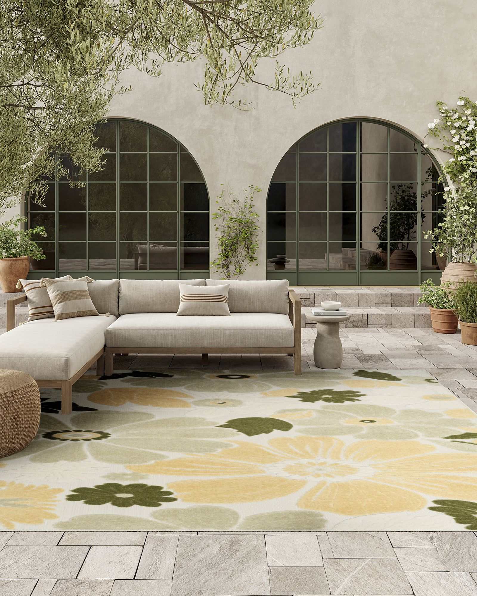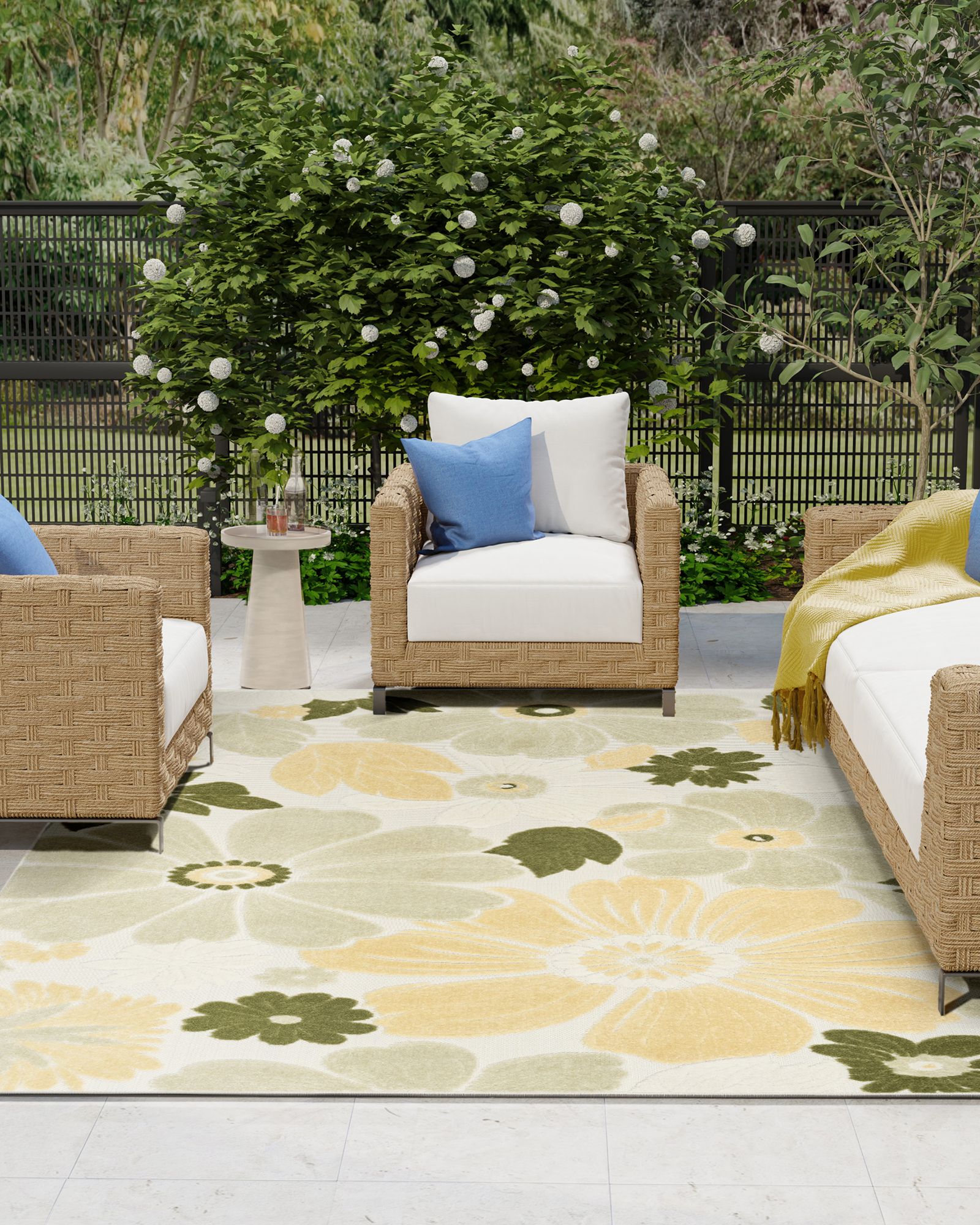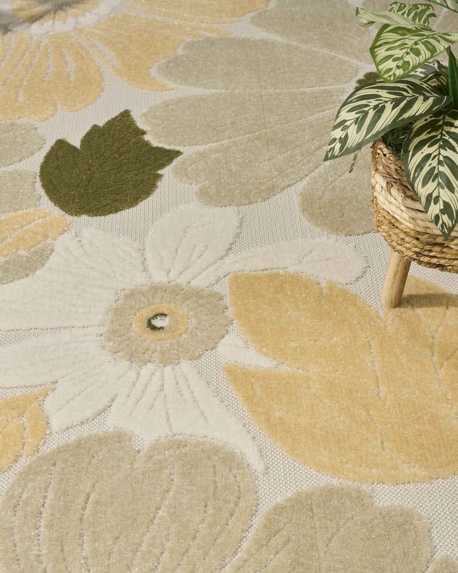 Bring a fresh and inviting burst of pattern to any space with this green, grey, white, and yellow outdoor rug from the Nourison Aloha ALH42 Ivory Green 2'8"x4' Area Rug Collection. The oversized floral pattern, enhanced by a high-low dimensional pile, creates a cheerful focal point for patio conversation areas and living rooms alike. This colorful rug is both stylish and functional in a 100% polypropylene construction that’s easy to clean, making it ideal for busy households with kids and pets. This sunny and sensational collection of flat woven outdoor rugs is pretty, practical and simply perfect for high traffic areas. With its inviting assortment of classic and contemporary designs, tempting color palettes and terrific textures, these multipurpose rugs will afford an air of simple sophistication to any environment.