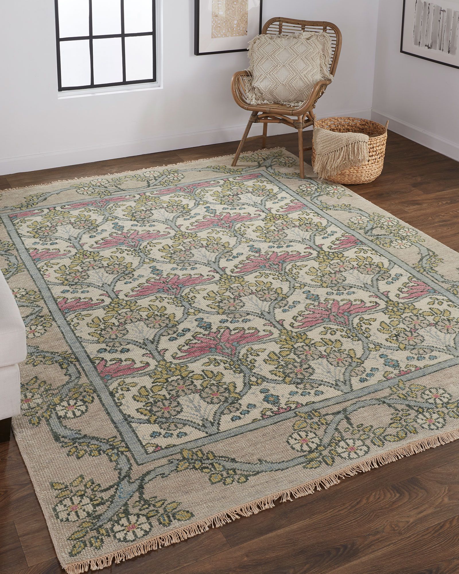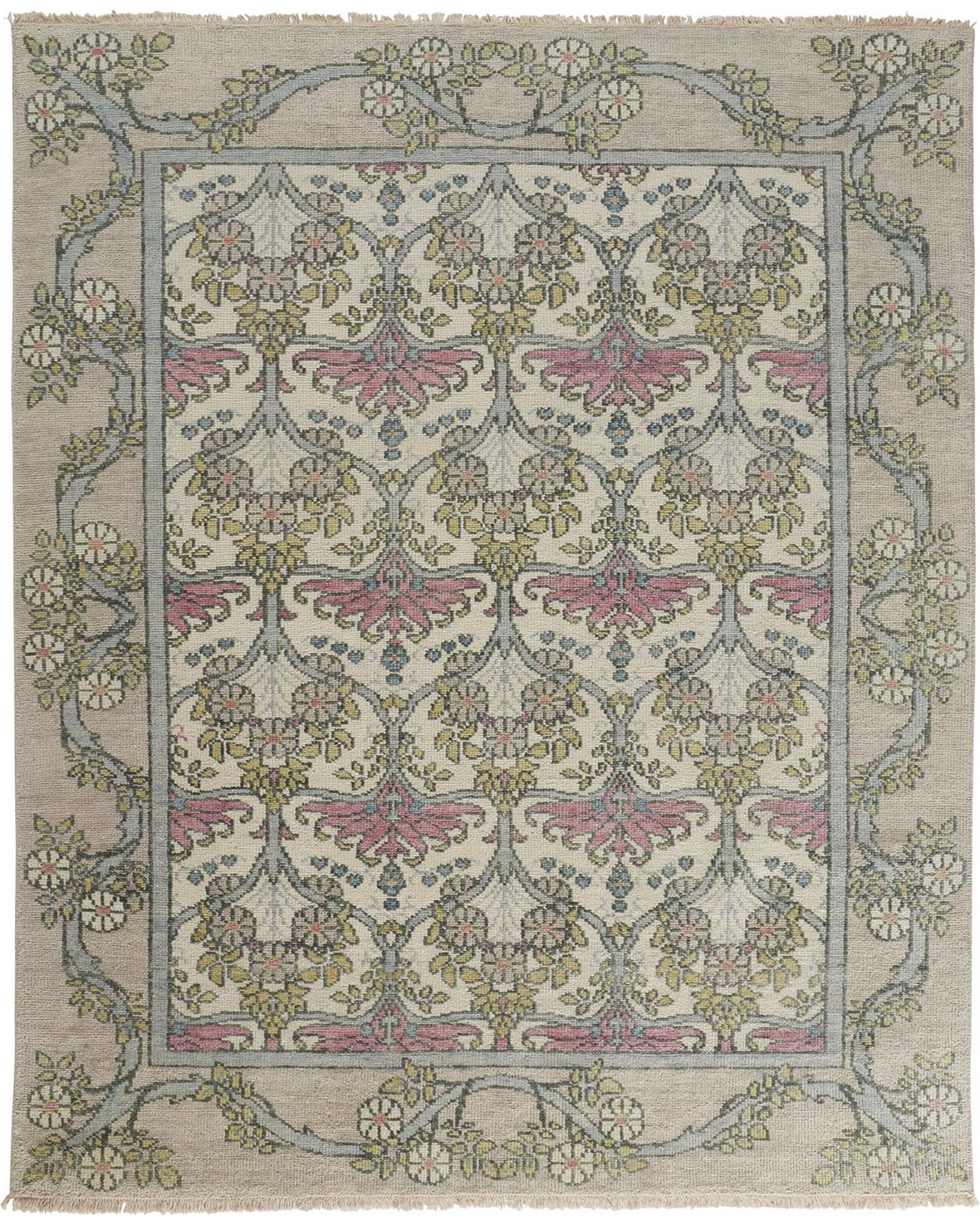 From the late 19th to the early 20th centuries, the Arts and Crafts movement rebelled against mindless mass production and frivolous ornamentation. The Feizy Beall 6714F Ivory/Pink/Green Area Rug Collection, with its hand-knotted interpretations of the art of the movement, is a modern reimagining of those concepts. Awash with glorious, updated palettes that feature royal, teal, and vermillion amid vibrant pastels and neutrals, Beall offers a style revival with an anachronistic wink and uncompromising craftsmanship.
