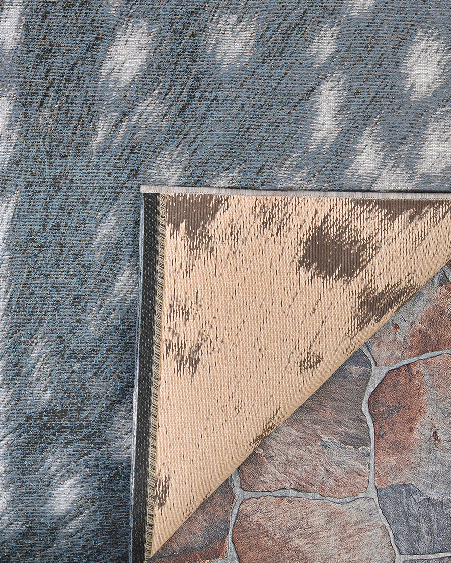 The Couristan Dolce Hyena Denim-Silver Area Rug Collection offers a refreshing appeal and is designed to withstand the outdoor elements, while also being stylish enough for indoor settings. The Dolce collection has a unique aesthetic that can be subtle and simple or vibrant and intricate. It's woven of 100% fiber-enhanced Courtron polypropylene with polyester accents, making it mold and mildew resistant for long-lasting performance in open-air living spaces where water and moisture are prevalent. The UV stabilization process used to finish the rugs ensures that the colors remain locked-in and retain their rich liveliness despite regular exposure to sun and other weather elements. Additionally, the structured tapestry construction of this collection adds to its durability and versatility, making it a great choice for treasured living areas both inside and outside the home.