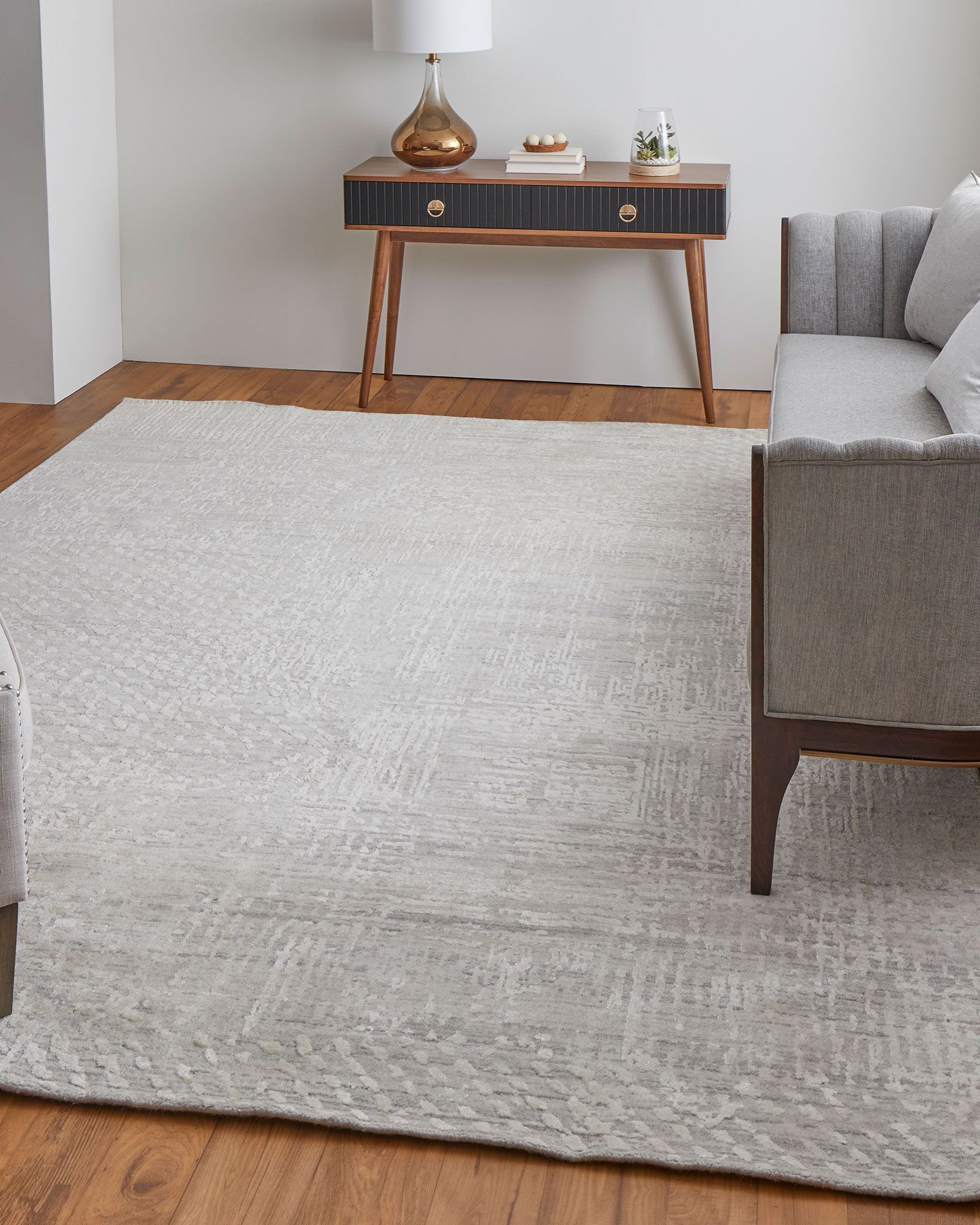 | Description | Artisanal heritage is woven into the Feizy Eastfield 69ABF Ivory Collection's wool viscose rug, boasting a modern, casual style. The hand-loomed construction offers a cost-effective alternative to hand-knotted rugs, featuring an abstract, distressed pattern in a blend of blue, silver, gray, gold, and ivory. A variety of sizes ensures a perfect fit for any space. |
