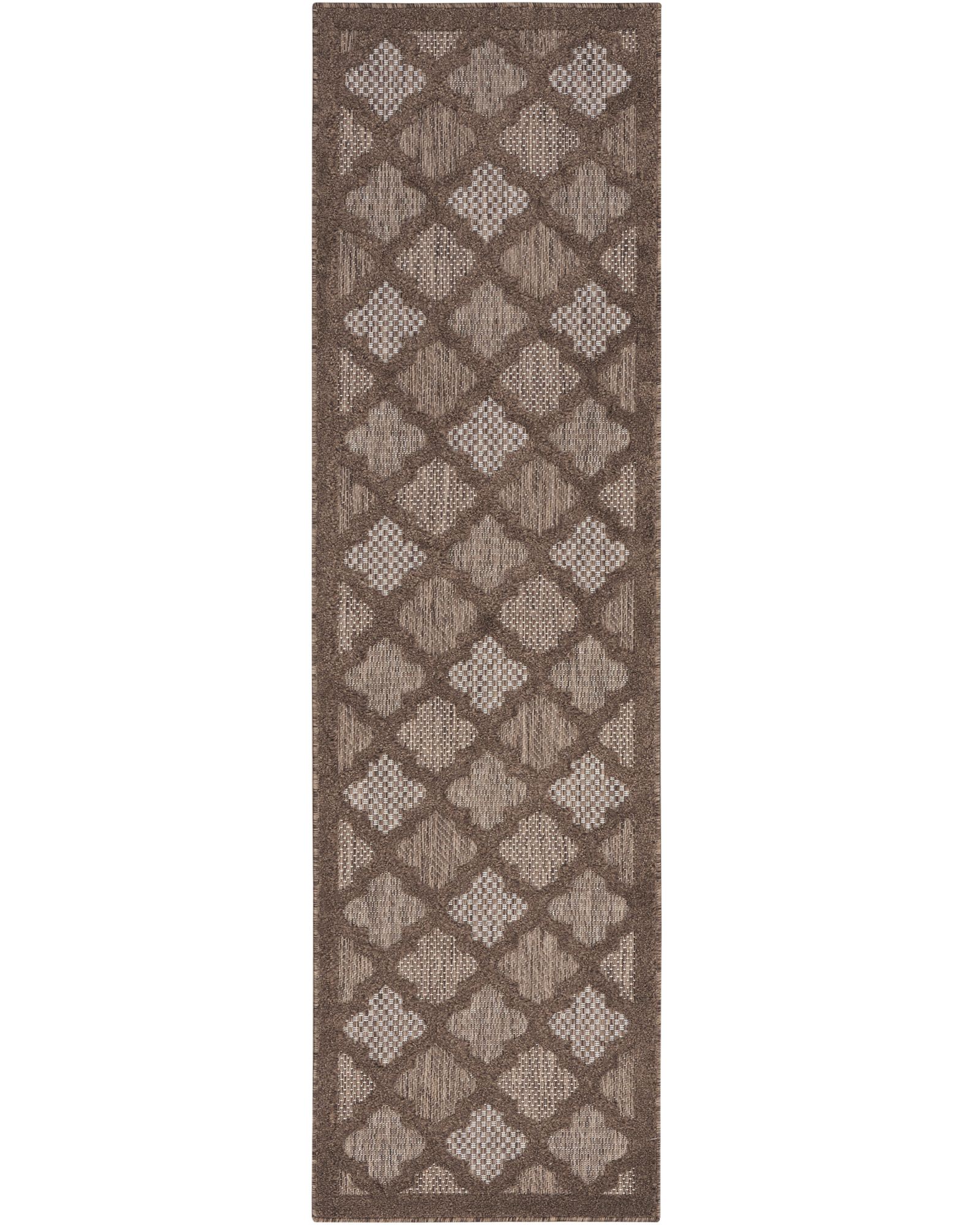 Description Refresh your home with the stylish designs showcased in the Nourison Modern, Outdoor, Rustic, Trellis Area Rug Collection. Featuring a flatweave ground with a softly textured high-low pattern, these indoor/outdoor rugs bring pleasing dimension to just about any space – from the living room, entryway, or kitchen to the porch, patio, deck, or balcony. Machine made from durable, low-shed, easy-clean fibers that are great in busy households and for all seasons spent outdoors. Ground your indoor or outdoor seating area in the stylish appeal of this outdoor rug from the Easy Care Collection. The space-dyed backdrop, presented in comforting tones, is enhanced by a raised Moroccan trellis pattern that adds an appealing sense of depth. Place it in your living room, dining room, entryway, or favorite outdoor space such as the patio, porch, or deck for an instant boost of inviting style. Machine-made from durable, low-shed fibers that are easy to clean, making this a great choice for all seasons spent outdoors. Hand washable outdoors: rinse with a hose and air dry.