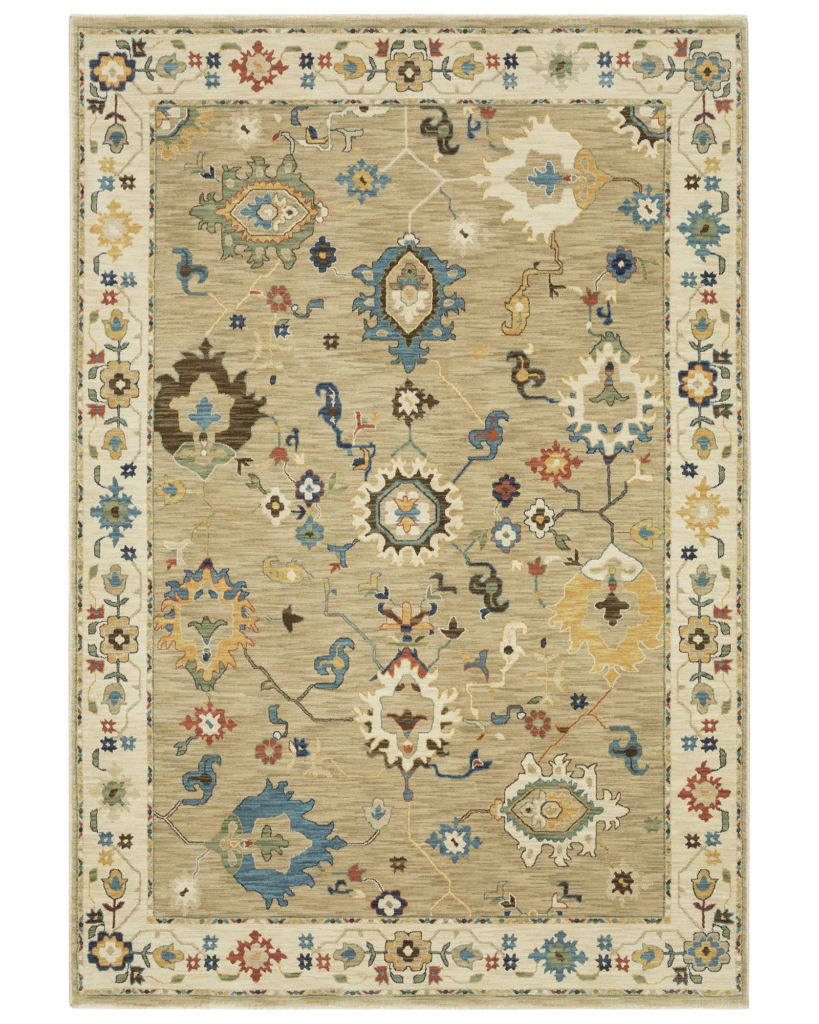 | Description | The Francesca fr04e Beige/Multi Area Rug collection features softened jewel tones of sapphire and turquoise, muted gold, and cinnabar alongside nature-inspired neutrals and an earthy brown and green. It is power-loomed of space dyed, super soft polypropylene. Francesca showcases updated traditional patterns highlighting open fields, updated borders, and some folk-art flair. By Oriental Weavers. |
