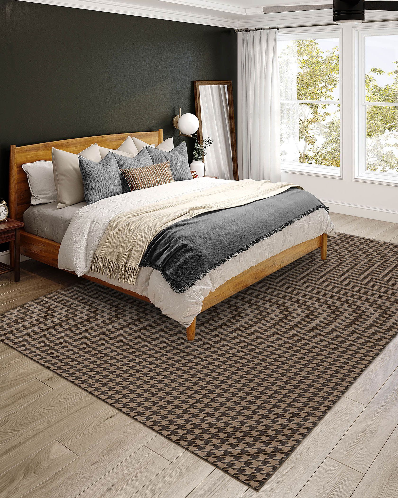 Redefine your home aesthetic with the Dalyn timeless houndstooth Hinton HN1 Chocolate Area Rug Collection, crafted with families and pets in mind. With a diverse palette of colors, there's always a perfect fit awaiting your decor needs. These rugs aren't just stylish; they're UV stabilized, making them a perfect choice whether you want them indoors or out. Thanks to the flat-woven chenille fabric, post-wash drying becomes a breeze. Plus, with the added non-skid backing feature, they're the go-to for homes buzzing with children and furry friends.