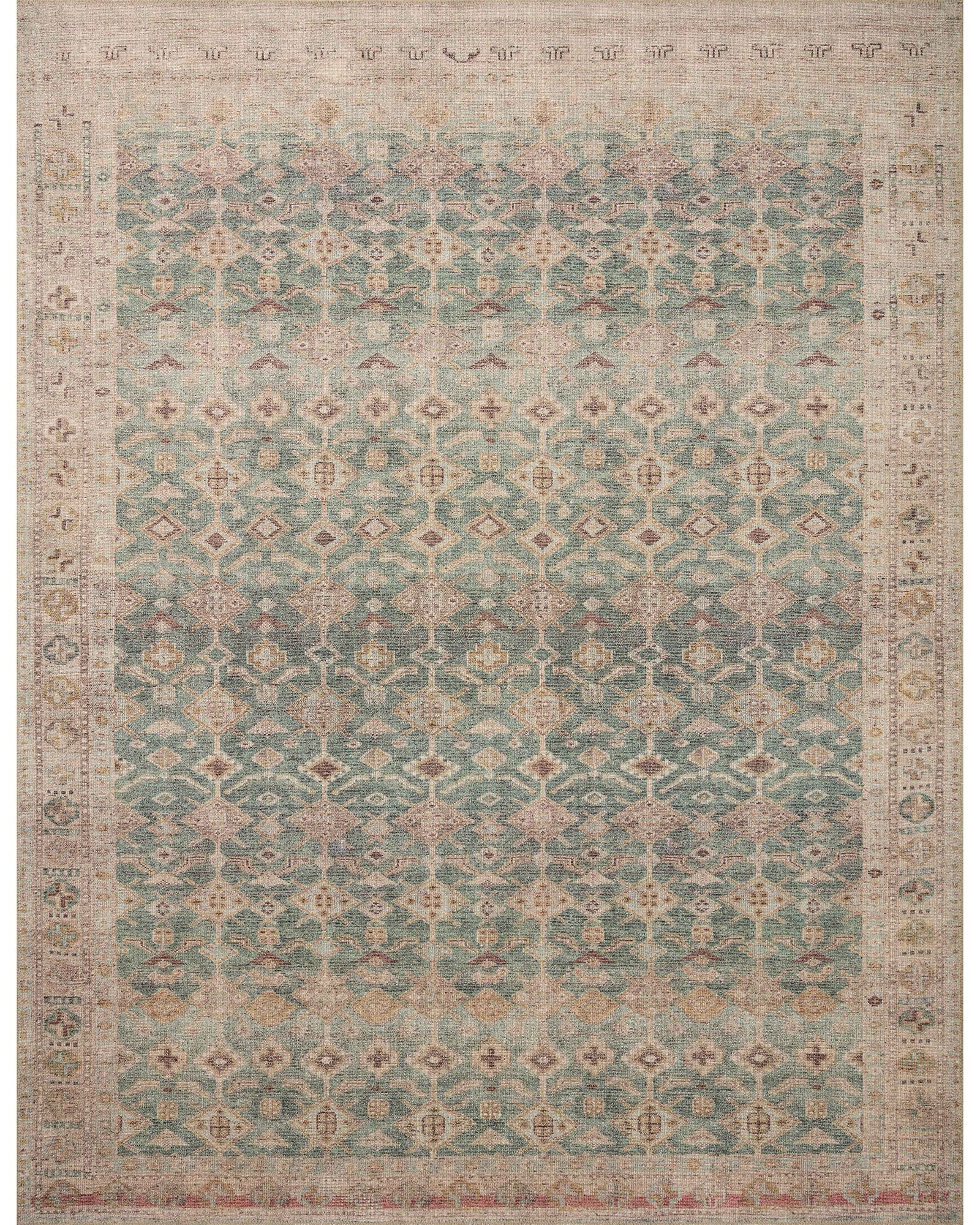 The Aubrey AUB-02 Aqua/Sand Collection by Angela Rose x Loloi is the vintage-inspired area rug that makes visitors do double takes. The distressed pattern is printed with uncanny precision, while the ombre-fading and warm palette create an inviting, lived-in look. This is an incredibly versatile rug for busy living rooms, bedrooms, or anywhere durability is required—which might just be everywhere. The Aubrey Collection is power-loomed in Turkey of 100% polyester pile, and carries the Oeko-Tex label, ensuring materials don't contain harmful substances.