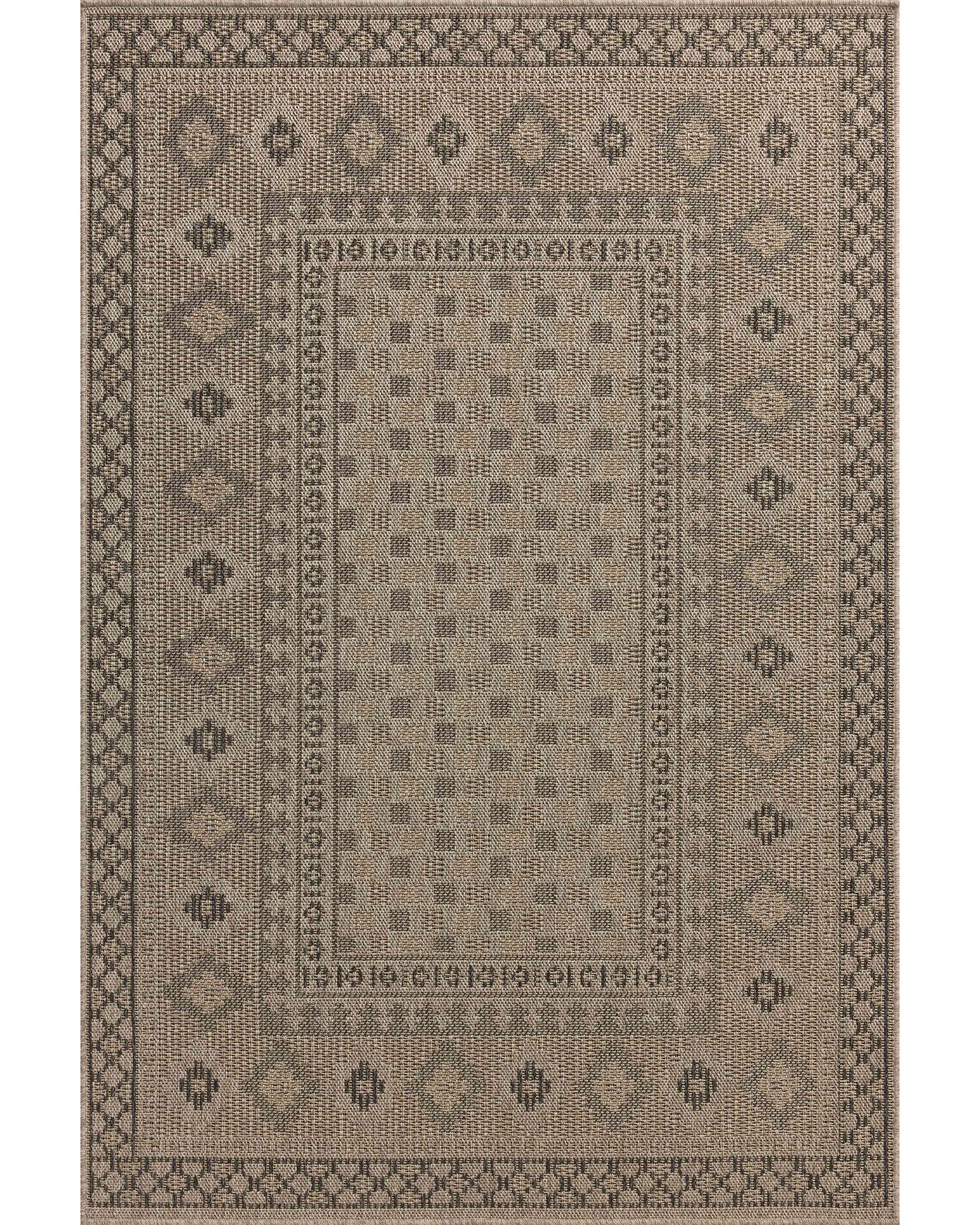 The Providence PRC-07 Dove/Charcoal Collection is an indoor/outdoor rug with a woven-style design by Chris Loves Julia x Loloi. Providence is made of extra durable power-loomed polyester for versatile styling in patios, mudrooms, dining rooms, hallways, or more. It has an earth-toned, organic design that resembles natural fiber rugs but is much easier to clean—just hose it off and leave it outside to dry. This collection is power-loomed of 100% polyester in Egypt and OEKO-TEX certified, ensuring its materials don't contain harmful substances.