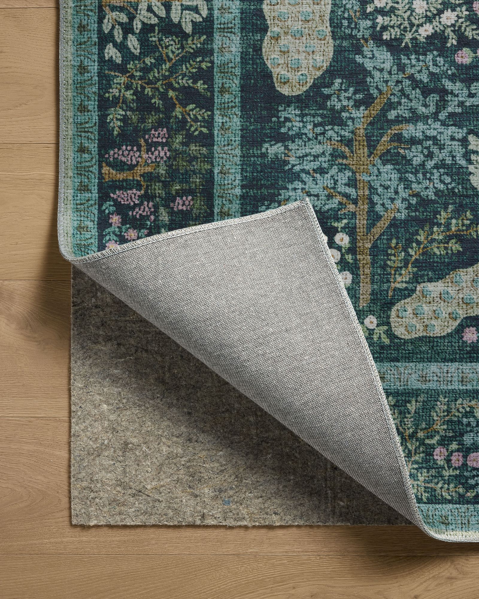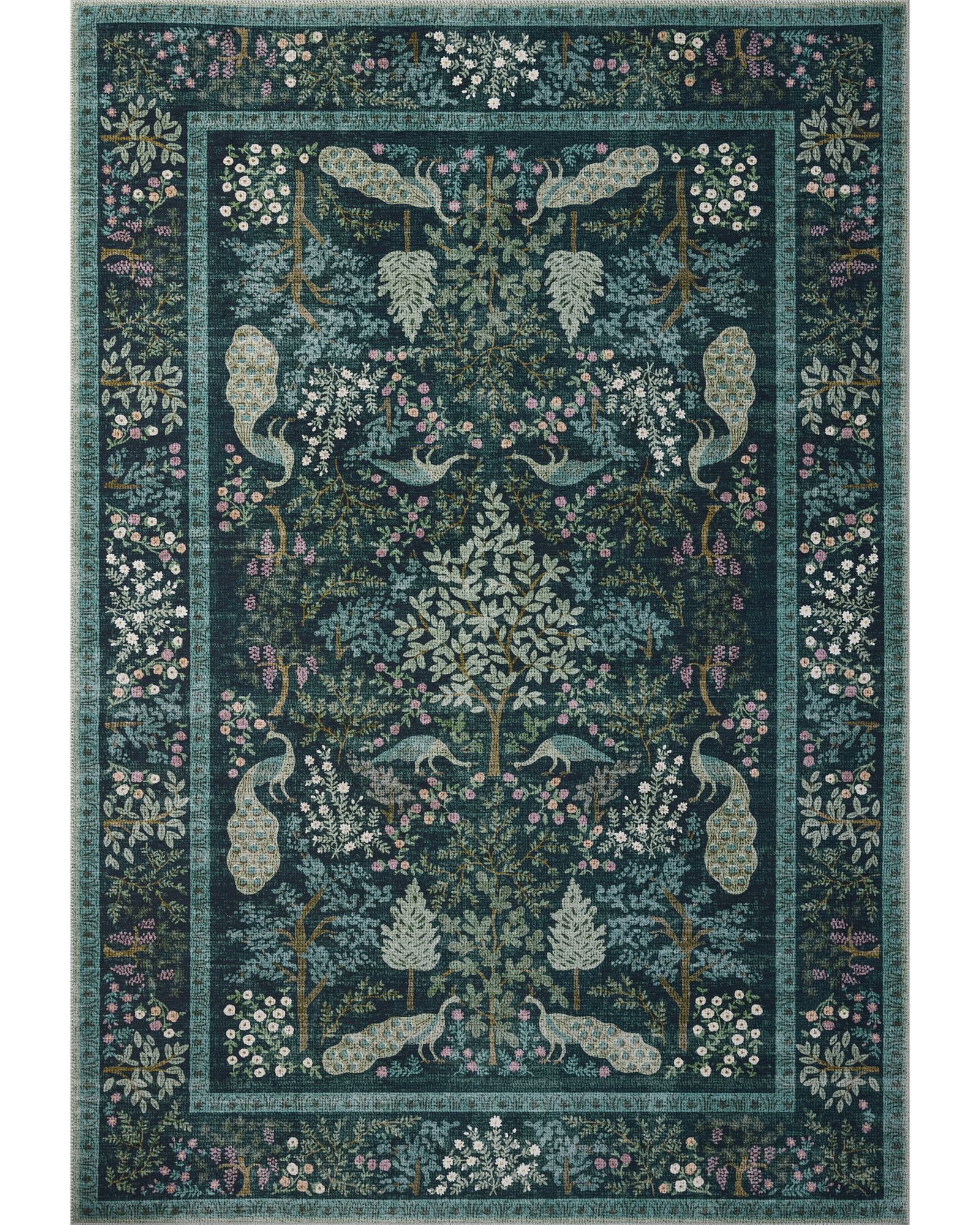 | Description | The Canopy CNP-05 Teal 2'0" x 3'0" Area Rug Collection is a floral area rug with an enchanted forest design based on hand-painted artwork by Rifle Paper Co. in collaboration with Loloi. The whimsical design features lush scenes visited by charming woodland creatures, from prancing deer to beautifully plumed peacocks. This collection is power-loomed of a soft blend of polyester and cotton, a durable construction for living room rugs, bedroom rugs, entryway rugs, and more. |