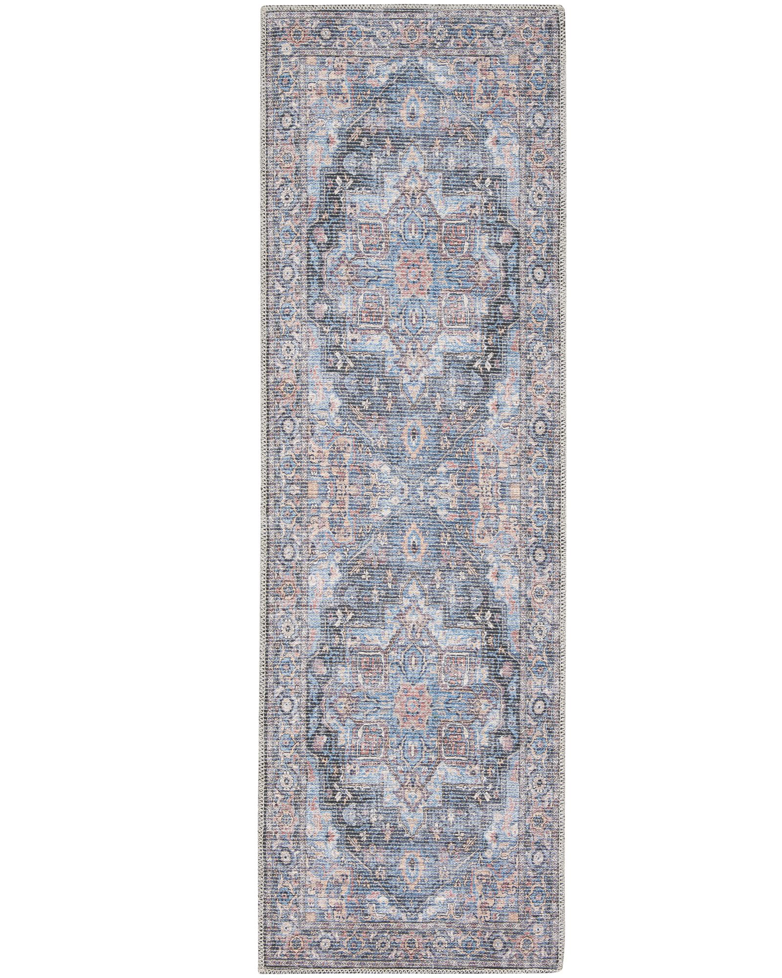 Bring Persian-inspired elegance to your home with this boho rug from the New Concept Washables SR101 Light Blue Multicolor 2'x3'9" Area Rug Collection. The intricately printed floral medallion design in blue, beige, and pink multicolor adds charm, while intentional distressing lends a vintage touch. Lightweight and machine-washable, it’s crafted from a soft cotton and chenille blend. The New Concept Washables Collection channels the vibrant spirit of the past through intricately printed Persian floral and tribal designs. These vintage-inspired rugs create a welcoming sanctuary in your home, with each design featuring a distinctively distressed finish for a lived-in charm. New Concept rugs are crafted with a machine-washable blend of flat woven chenille and cotton fibers, offering a soft texture and easy cleaning.
