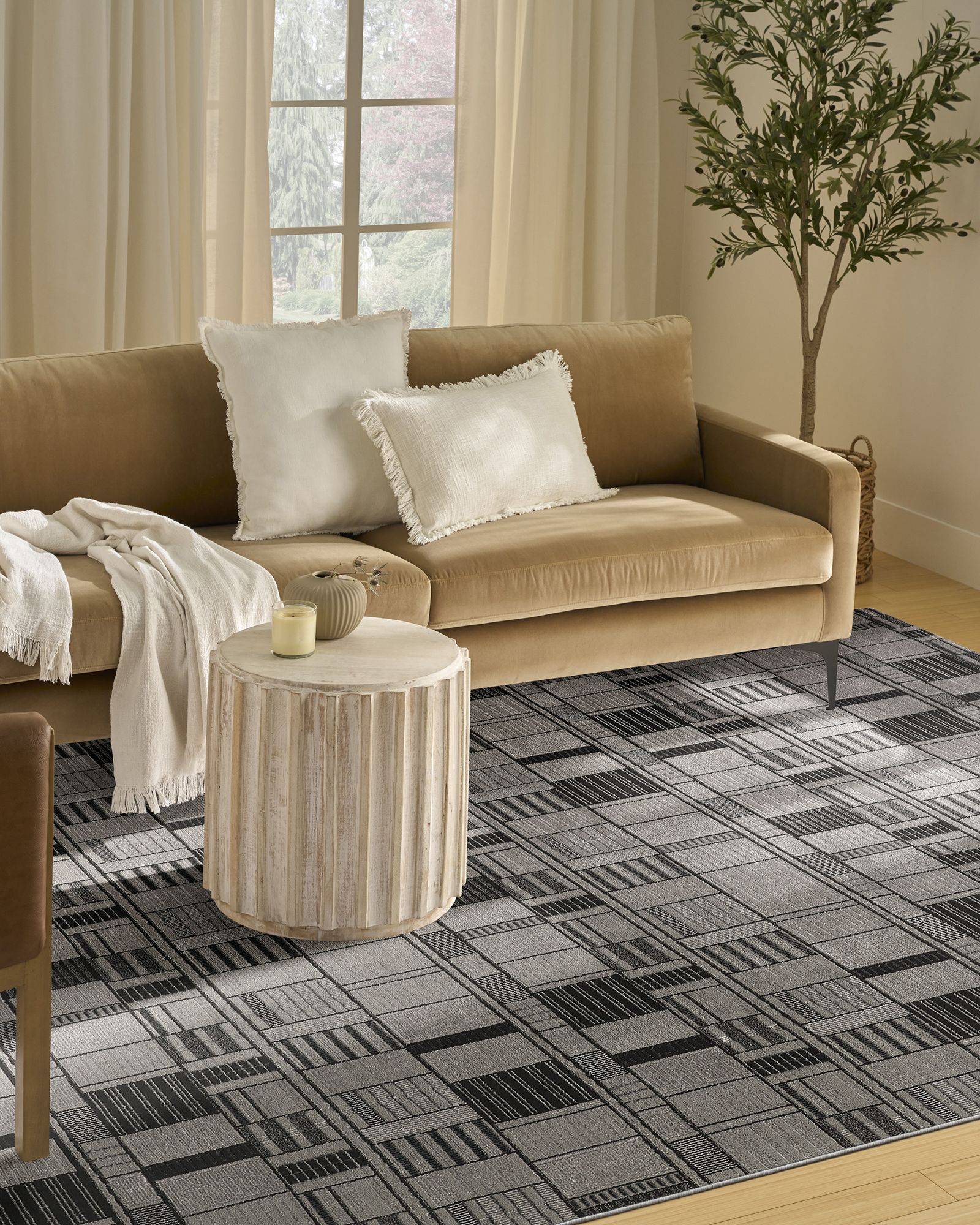 Invite clean, understated elegance to your decor with the Nourison Nordic NRC04 Black Grey Area Rug Collection. These abstract and geometric rugs draw inspiration from the principles of Scandinavian design to bring you simple, yet impactful looks that help create a more serene atmosphere. Each style is finished with a subtle sheen and high-low dimensional pile that adds visual appeal without overwhelming your space. Choose from a variety of sizes to create a coordinated look between rooms – from runners for the kitchen and bathroom to large 8x10 rugs for the living room. Invite a touch of contemporary flair to your home with this geometric rug from the Nordic collection. The structured, block-like pattern creates a visually engaging foundation for your decor, enhanced by a high-low pile and subtle sheen for added dimension. Expertly crafted in a low-profile construction that’s easy to clean – perfect for busy households with pets and young kids.