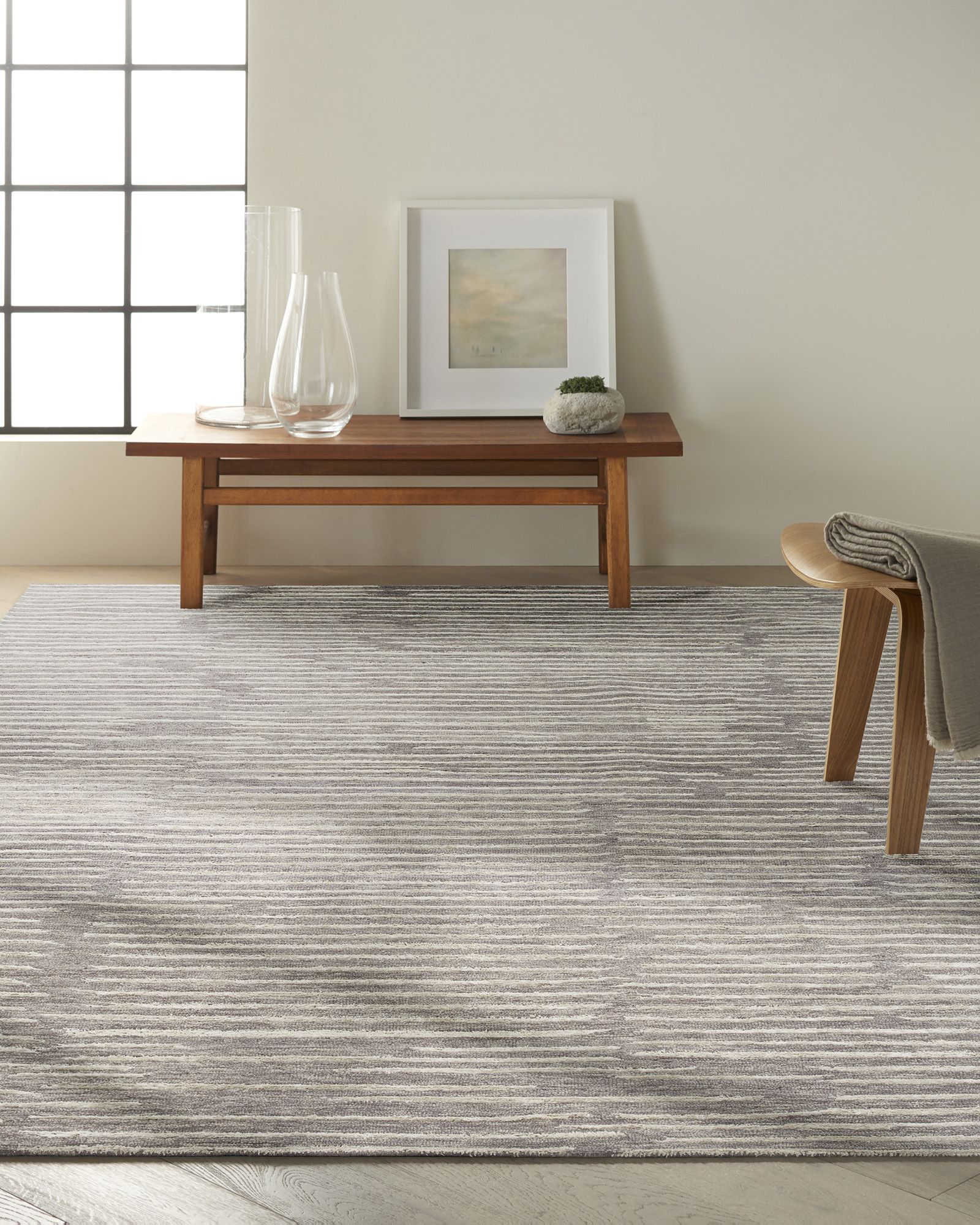 | Description | Simple and refined. The Calvin Klein Ck010 Linear LNR01 Grey Area Rug Collection elevates casual style through its fusion of intricately cut and looped textures that create high-low dimension in neutral tones, and highlighted with shimmering accents. Handmade from a premium blend of wool and Luxcelle. |