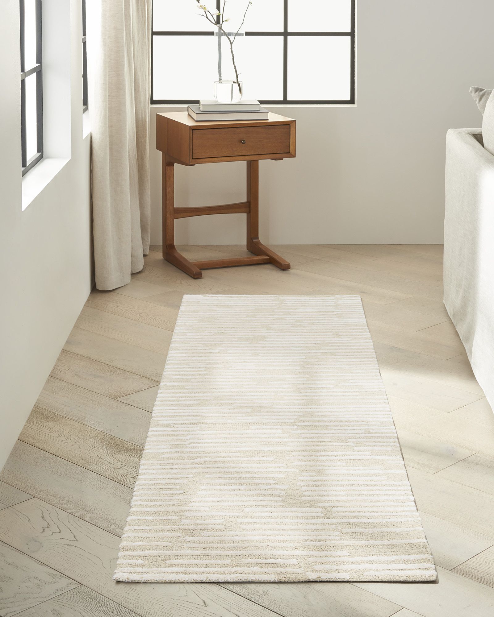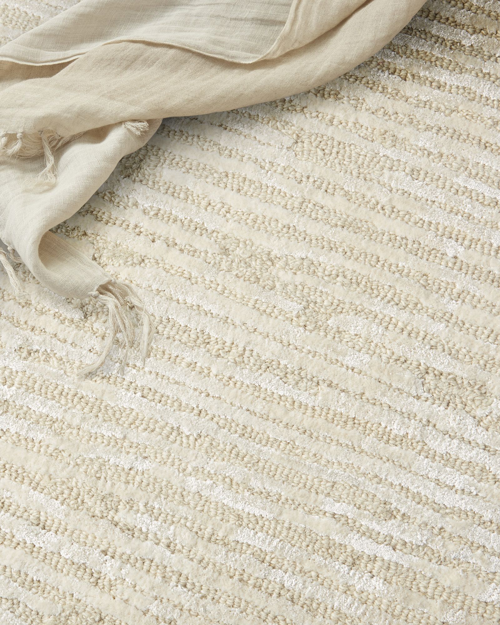 | Description | Simple and refined. The Calvin Klein Ck010 Linear LNR01 Ivory Area Rug Collection elevates casual style through its fusion of intricately cut and looped textures that create high-low dimension in neutral tones, and highlighted with shimmering accents. Handmade from a premium blend of wool and Luxcelle. |