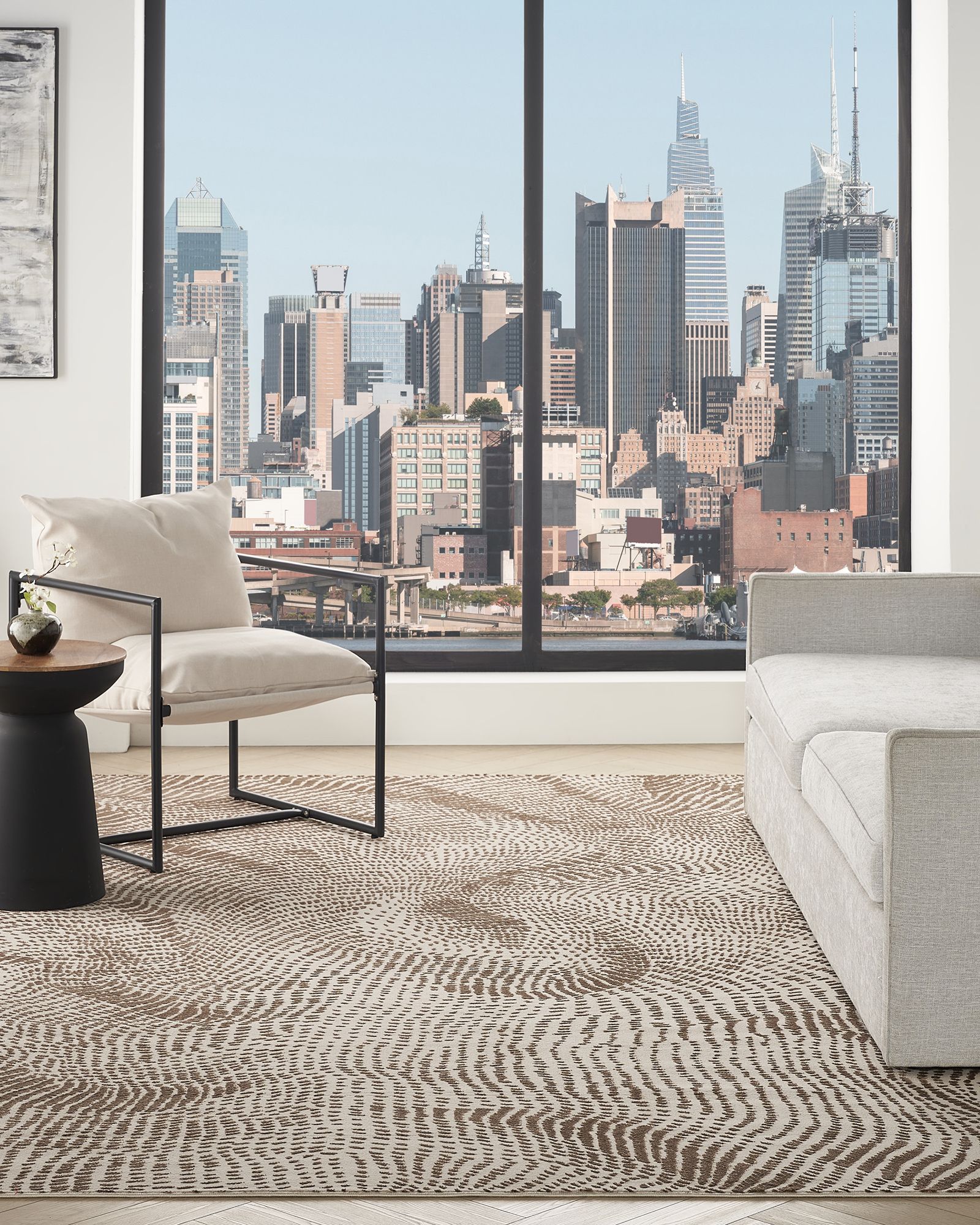 | Description | Ground your space in the effortless rhythm of relaxed living with the DKNY Central Park West collection of area rugs. Each style harmoniously blends style and comfort through soothing neutrals and fluid patterns. Finished with a high-low weave and shimmering accents for added texture and depth. Transform your living area with the serene elegance of this modern brown DKNY Central Park West rug. The abstract design infuses an organic sense of movement that evokes tranquility and calm. With its high-low cut pile and shimmering finish, this rug enhances any room with intriguing texture. |