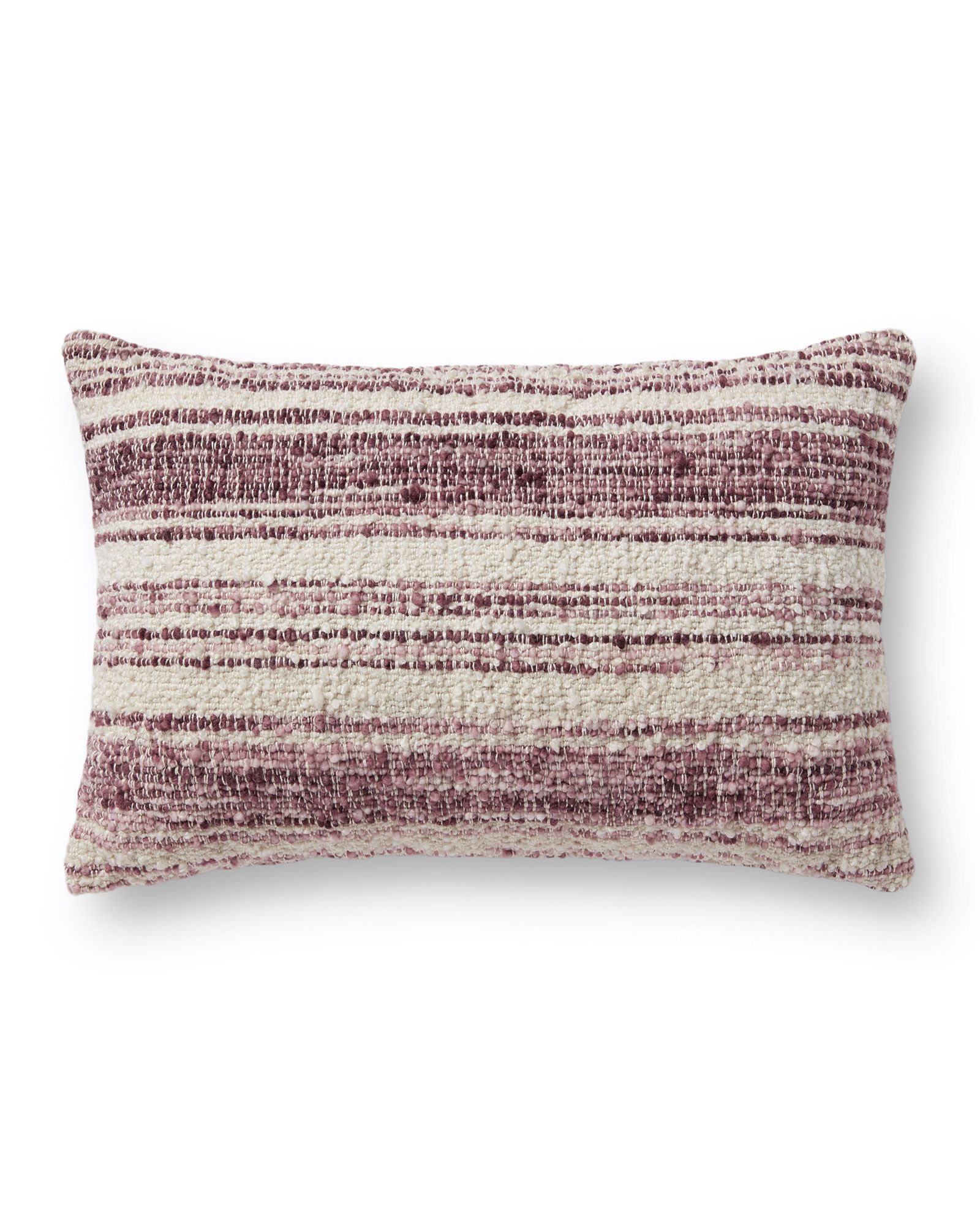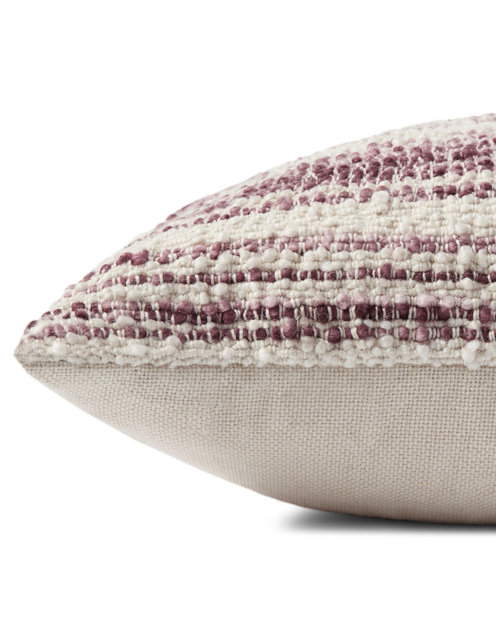 | Description | The Loloi x Chris Loves Julia PCJ0002 Burgundy/Ivory 13"x21" Pillow features a purple and white striped design with a textured feel. Closure: Hidden Flap, Zipper: Antique Bronze Finish With Loloi Logo, Edge Treatment: Knife Edge, Back Color: Beige |