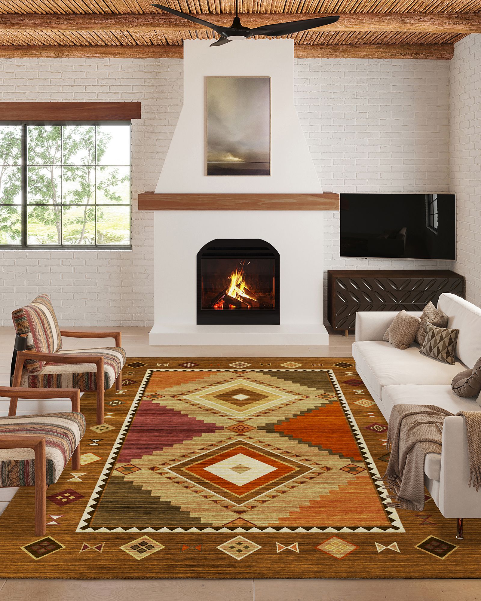 | Description | The Dalyn Phoenix PH2 Walnut Area Rug Collection offers a casual, southwest style featuring geometric Aztec patterns. It's UV stabilized for indoor and covered outdoor use. The 100% polyester flat woven construction has an incorporated non-skid backing. Crafted in the USA. |