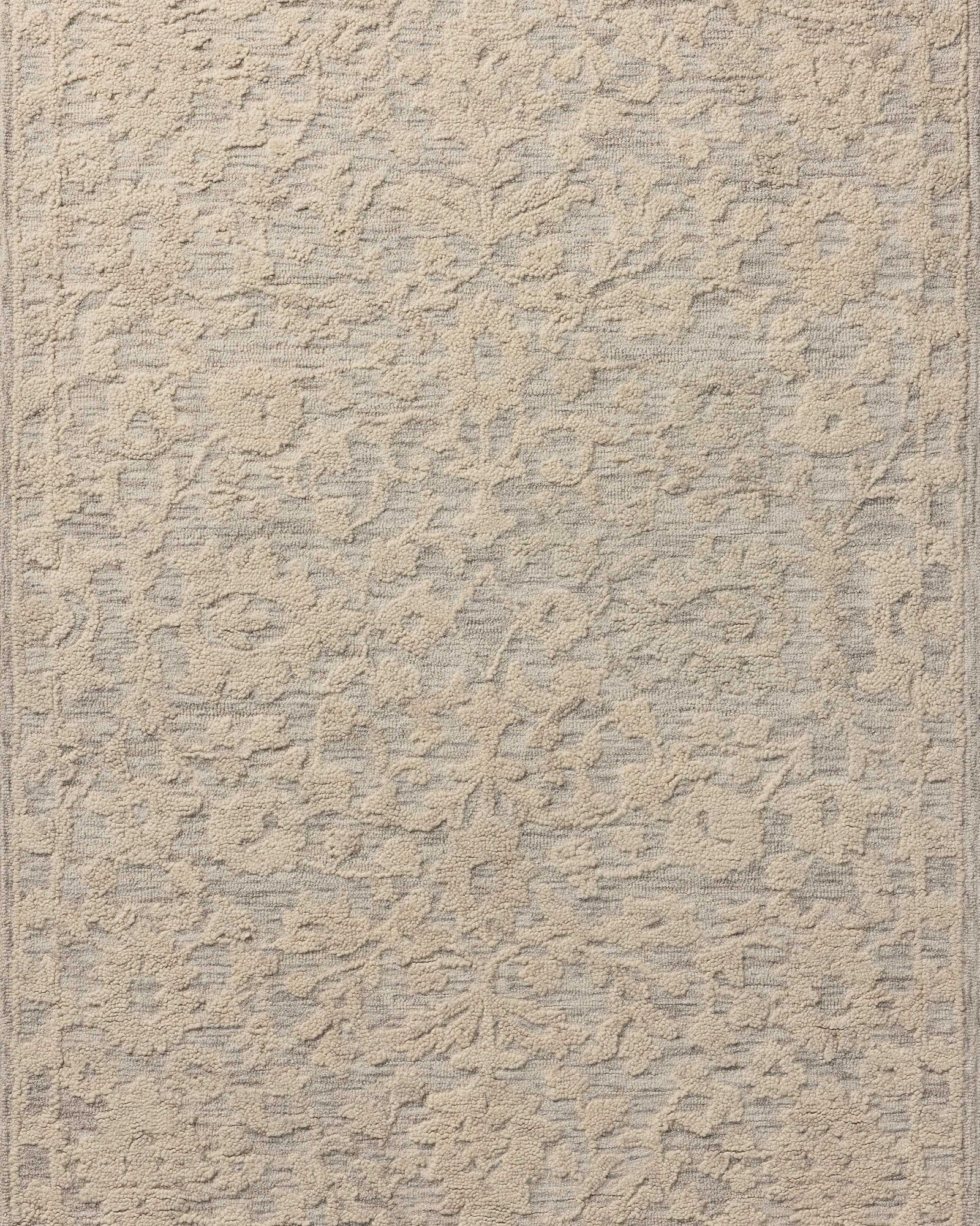 The Loloi Prudence PRU-01 Mist/Ivory Area Rug Collection is a hand-tufted area rug made of soft, space-dyed wool and cotton, which lends a subtle gradation of color throughout the floral design. The rug’s background is low-looped, while the pattern is made with a chunky, higher loop to create even more depth in this sophisticated design. This collection is hand-tufted of wool and cotton in India and GoodWeave-certified, ensuring our commitment to ethical production and the support of weavers’ communities.