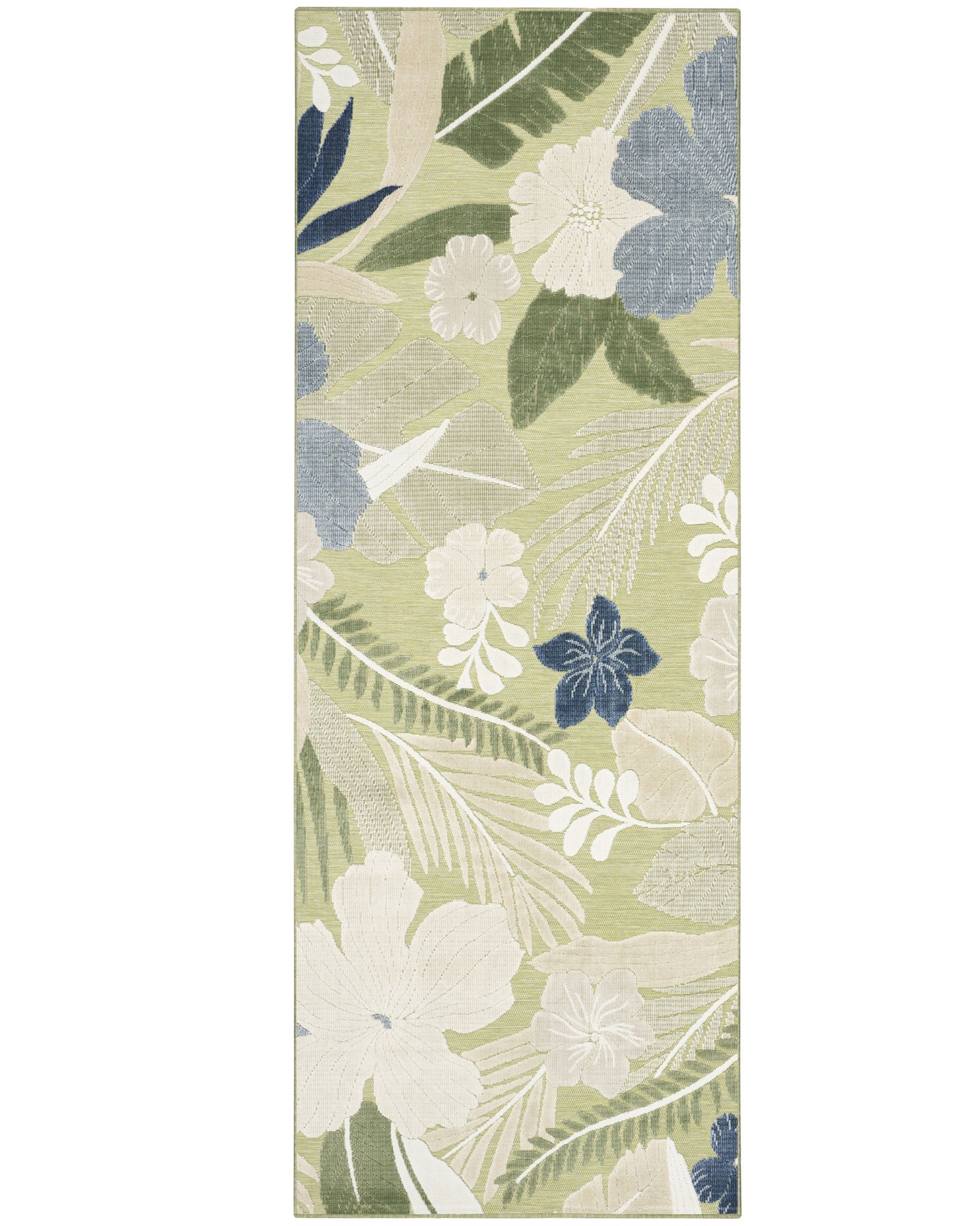 Energize any space with this green and blue indoor/outdoor rug from the Suncoast SNC01 Green Blue 4'x6' Area Rug collection. Bold blooms and leafy details make it an eye-catching accent for patios, sunrooms, living rooms, and more. The low-profile construction lays flat quickly and does not shed – great for high-traffic areas. Bring bold style to any setting, indoors or out with the Suncoast collection. These indoor/outdoor rugs showcase bold, oversized designs that transform conversational areas into tropical escapes. Made from 100% polypropylene with a flat construction and soft-cut textural patterns.