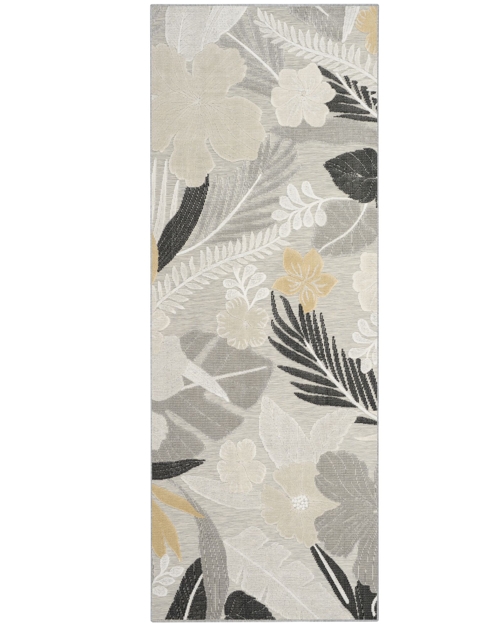 Energize any space with this grey indoor/outdoor rug from the Suncoast SNC01 Grey 4'x6' Area Rug collection. Bold blooms and leafy details make it an eye-catching accent for patios, sunrooms, living rooms, and more. The low-profile construction lays flat quickly and does not shed – great for high-traffic areas. Bring bold style to any setting, indoors or out with the Suncoast collection. These indoor/outdoor rugs showcase bold, oversized designs that transform conversational areas into tropical escapes. Made from 100% polypropylene with a flat construction and soft-cut textural patterns.