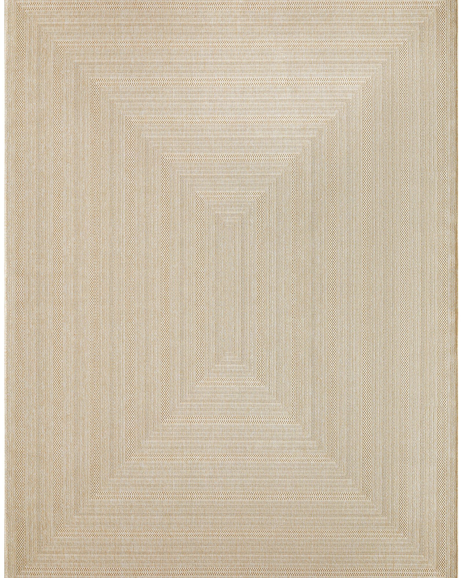 Bring timeless style to your space with this cream outdoor rug from the Tulum TLM04 Cream 10'x14' Area Rug collection. The concentric rectangular pattern is designed to draw the eye—perfect for defining a patio conversation area or living room. This geometric rug, presented in cozy earth tones with subtle tonal variations, is made from polypropylene for easy cleaning. Discover the inviting charm of the Tulum collection of indoor/outdoor rugs. These richly pigmented flatweave rugs are enhanced with tonal variations that bring a cozy and welcoming feel to your patio conversation area. Tulum is made from 100% polypropylene for all-weather resistance and easy cleaning: simply hose rinse and allow both sides to air dry fully. Available in a variety of sizes and shapes to complement any space – from small bathrooms and apartments to kitchens, living rooms, and balconies.