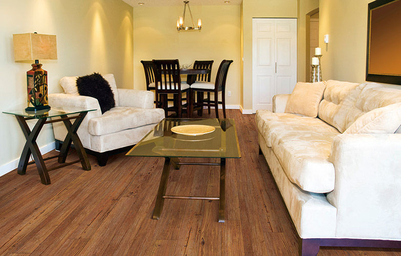Again, just like it does with hardwood flooring, darker colors of COREtec can help you quickly create a rich and elegant feel in just about any room. Choosing a dark pine, walnut or hickory hue can make a cavernous room feel decidedly cozier. And a number of studies indicate that having a darker hardwood look on your floor can actually increase your home’s resale value.