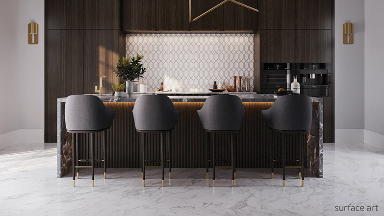 To enjoy the very best of both worlds, consider using porcelain tile that looks like marble instead. That provides a very polished and elegant look that is also resistant to wear.