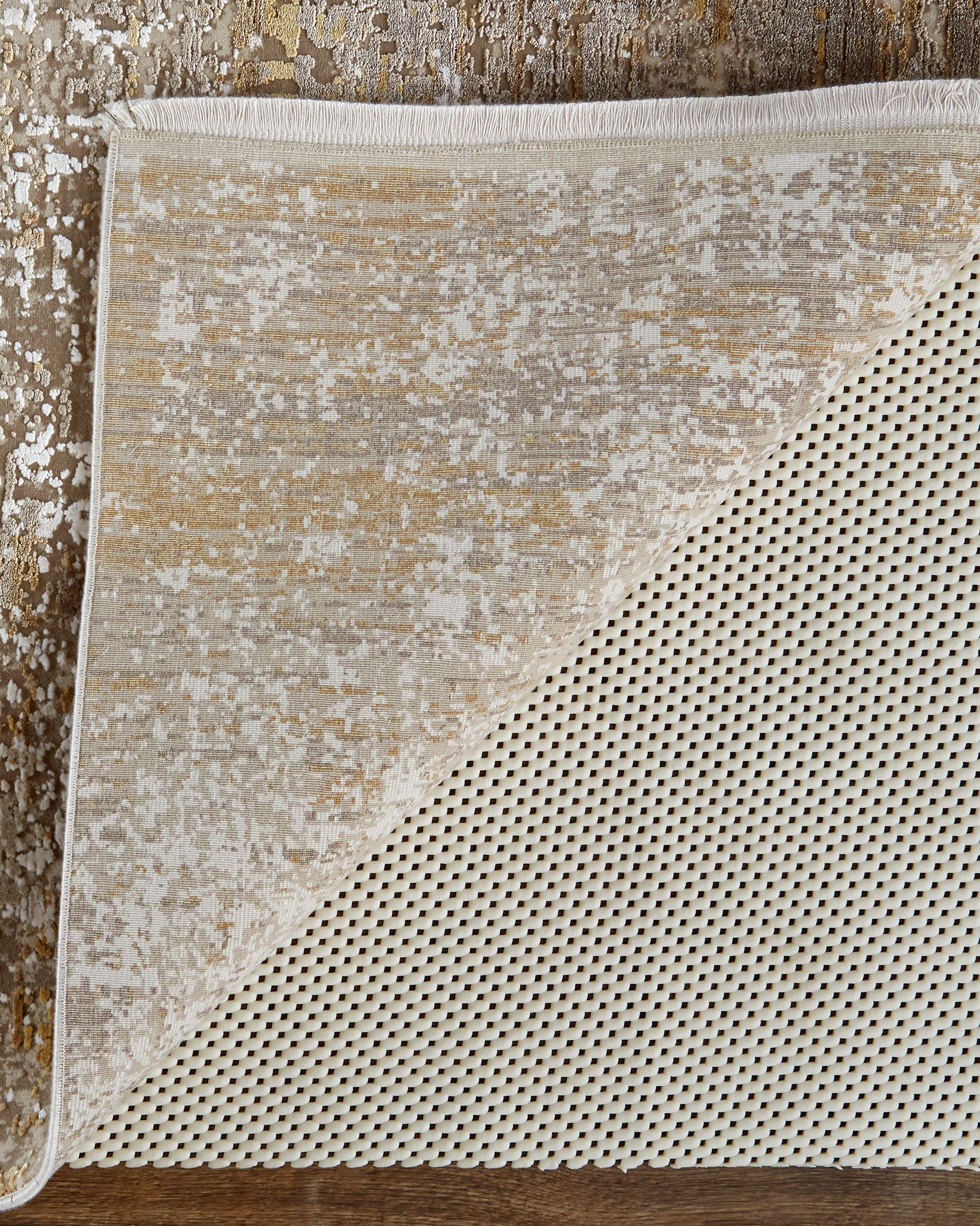 Created to provide contemporary and transitional designs, the Feizy Cadiz 39FWF Taupe/Ivory/Gold collection is loomed with viscose tufting in Turkey. The ultra-dense machine woven pile gives these pieces added durability with a soft touch. Using neutral colors of light brown, ivory, taupe, grey, and silver, the dynamic high-low finishes in each rug bring out the compelling patterns. This collection showcases a 3D high-low textural effect. Because of the viscose in the fabrication, this rug is ideal for areas that do not get high traffic within the house. Being fade-resistant, this contemporary statement is fitting for your living room while bringing a subtle sheen to the room.