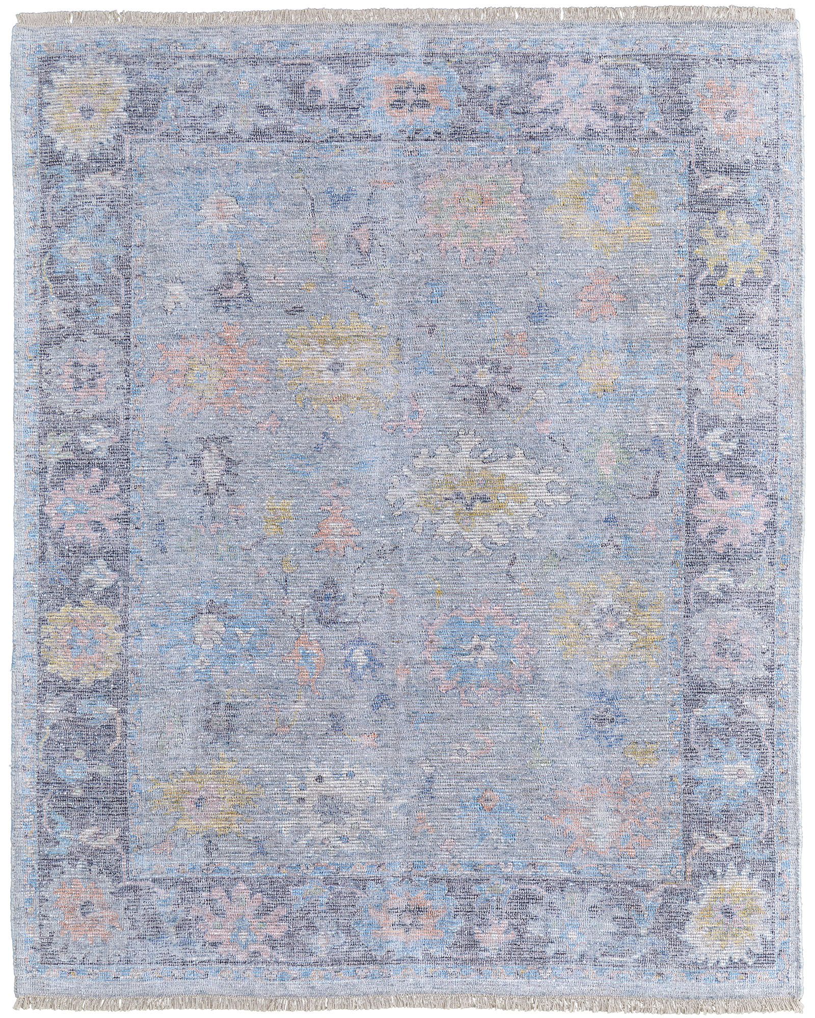 Infuse your space with the Feizy Caldwell 8979F Blue/Yellow/Orange area rug collection's charm, where the allure of handwoven craftsmanship meets the timeless beauty of transitional, bohemian, and eclectic styles. This area rug, adorned in soothing shades, brings a serene yet sophisticated vibe to any room. Its delicate blend of wool and viscose, paired with a subtle sheen, adds an understated elegance that complements your home decor without overwhelming it. Handwoven in India, embracing the artistry of traditional craftsmanship. Crafted from wool and viscose with a 0.40-inch low pile for a plush feel underfoot. Care instructions: Vacuum without beater bar, blot spills immediately, and professional cleaning recommended. Ideal for various spaces: entryway, hallway, dining room, office, living room, bedroom, kitchen, under king or queen bed. Sizes: 2x3, 3x5, 5x8, 8x10, 9x12, 10x14.