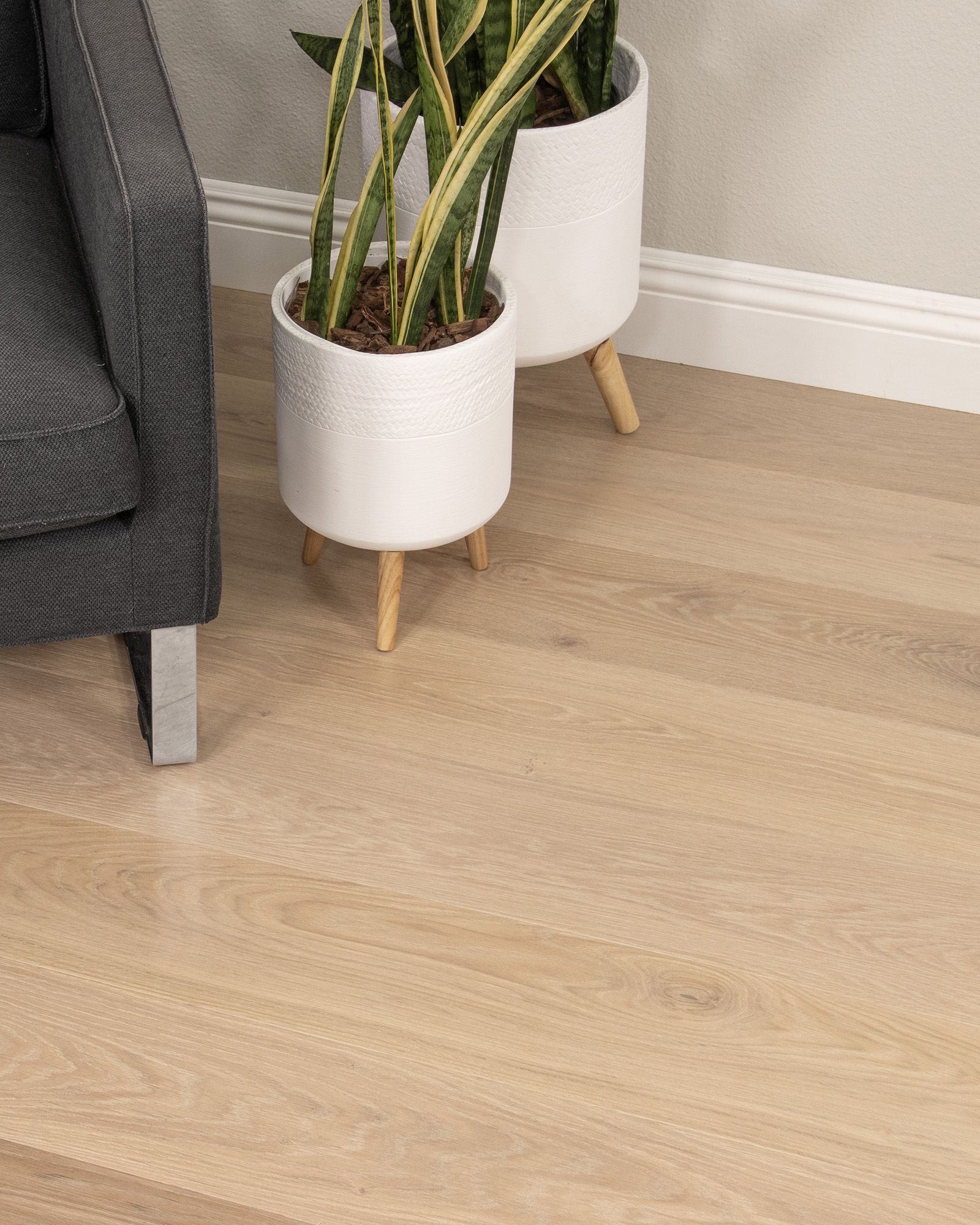 Blending the current with classic, CALI Hardwoods Barrel Sonoma Salt Oak Collection delivers timeless shades of hardwood, presented with signature CALI style. Engineered planks feature a 2mm thick beauty layer of European white oak stabilized by a sustainable acacia wood core. Using this fast-growing timber for the core allows plank to be more dimensionally stable and get 4x as much flooring from each oak tree. It offers an array of light, natural tones and clean, smooth grains, for a fresh palette designed to make spaces feel modern, open, and airy. Barrel planks are protected by a robust, scratch-resistant aluminum oxide finish, keeping them simple to clean and pet-friendly.