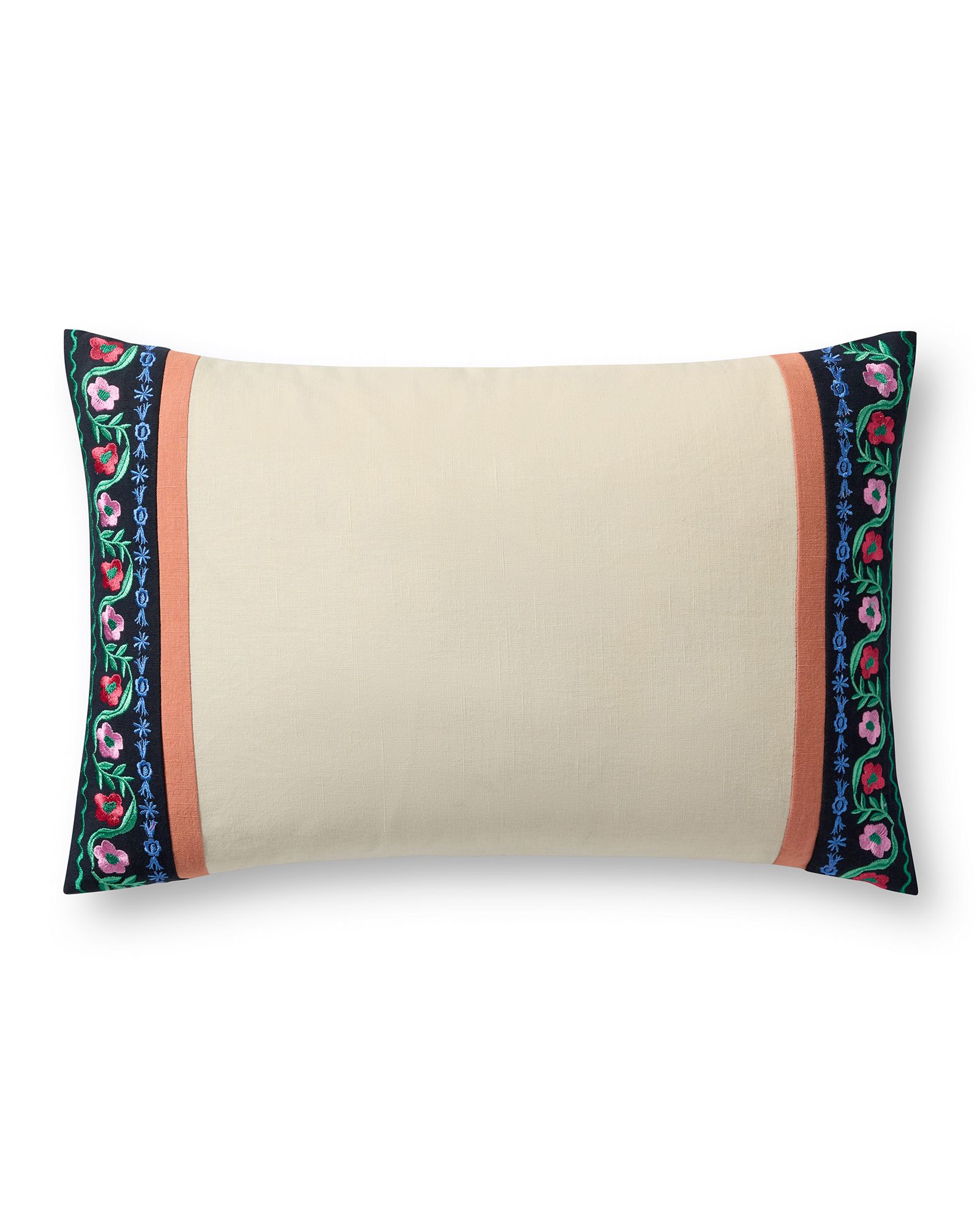 | Description | The Delphine Stripe PRP0067 Cream/Multi 13"x21" Lumbar Pillow is an ivory throw pillow from Rifle Paper Co. x Loloi that features embroidered floral edges based on folk textiles with original artwork by Anna Bond. The 13” x 21” lumbar pillow is machine-embroidered in India of linen and cotton. |