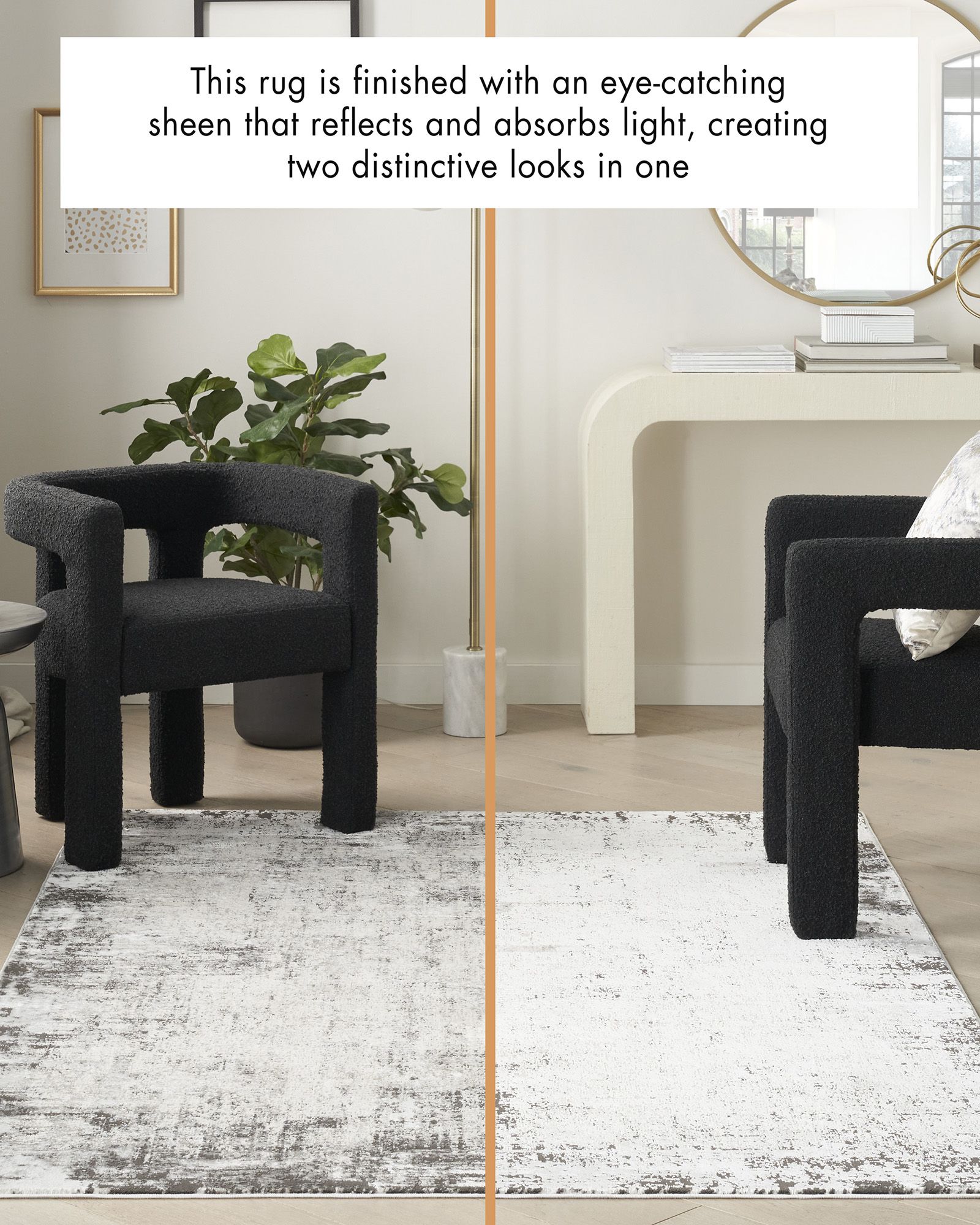 | Description | The Nourison Desire DSR05 Grey/Ivory Area Rug Collection of geometric and abstract rugs tastefully blends classic design elements with a modern sensibility. Pattern and texture variations, presented in neutral color palettes, are enhanced with a brilliant sheen that reflects or absorbs light to create two distinctive looks in one. These modern rug designs are made from easy-clean, non-shedding polyester yarns that feel amazingly soft underfoot, with a low pile height that fits easily under furniture. |