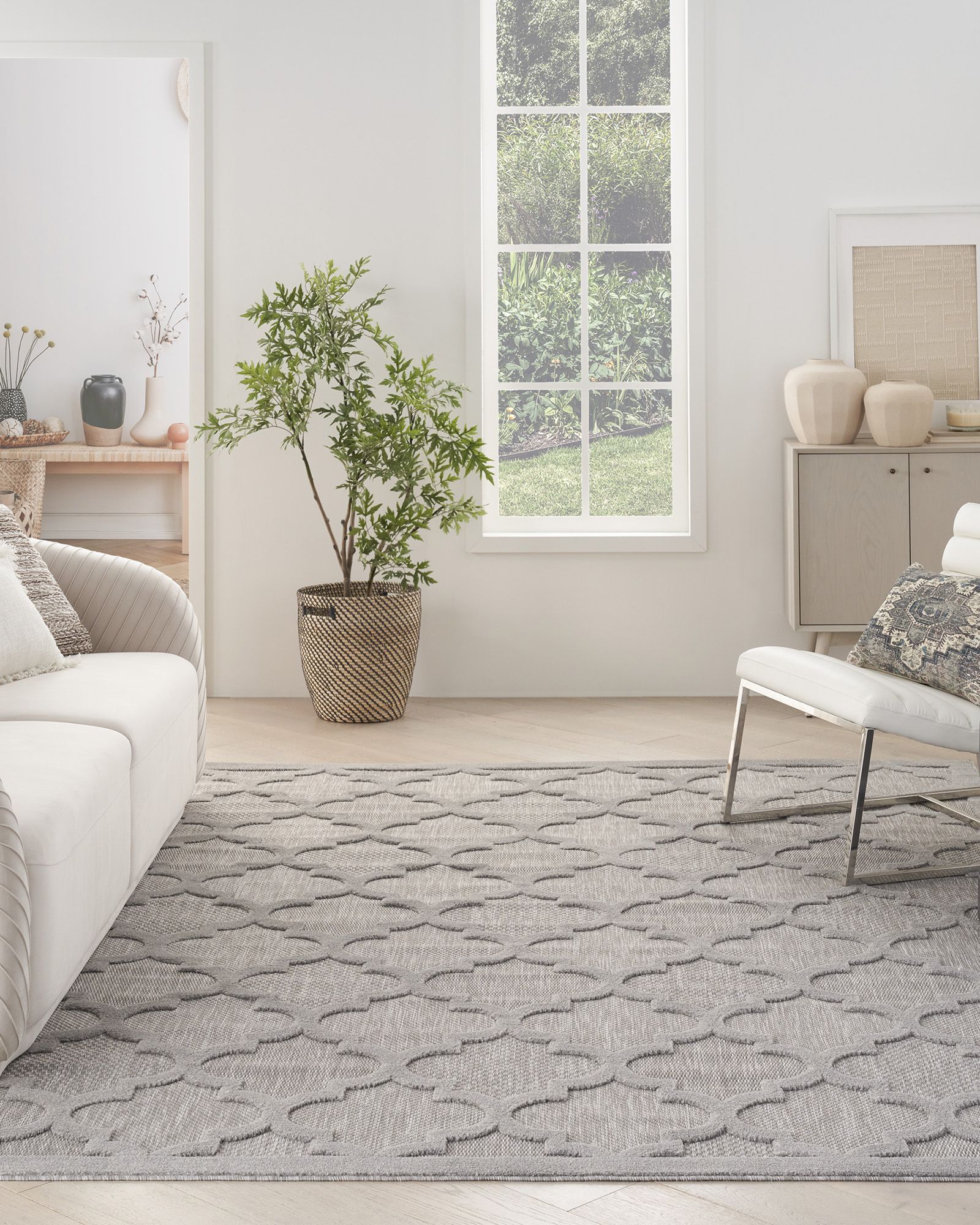 | Description | Refresh your home with the stylish designs showcased in the Nourison Easy Care NES01 Silver Grey Area Rug Collection. Featuring a flatweave ground with a softly textured high-low pattern, these indoor/outdoor rugs bring pleasing dimension to just about any space – from the living room, entryway, or kitchen to the porch, patio, deck, or balcony. Machine made from durable, low-shed, easy-clean fibers that are great in busy households and for all seasons spent outdoors. |