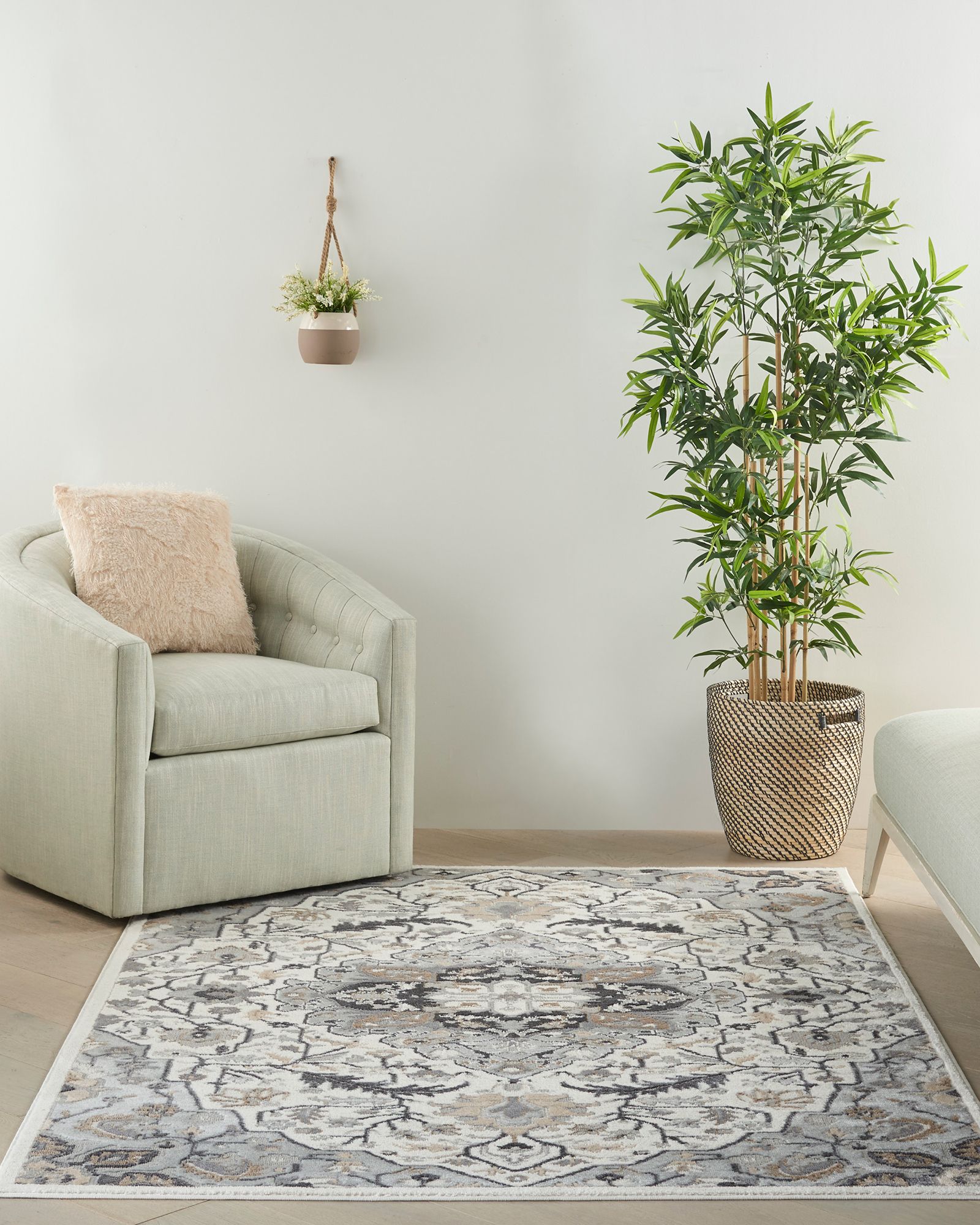 | Description | From vintage floral patterns to crisp geometric and abstract designs, the Elation ETN09 Ivory Grey Area Rug Collection of area rugs creates a chic foundation for your decor. Choose from a range of rug sizes to complement your entryway, living room, or bedroom with fresh style. Expertly crafted of low-profile polypropylene and polyester fibers for lasting comfort, easy cleaning, and soft texture. |
