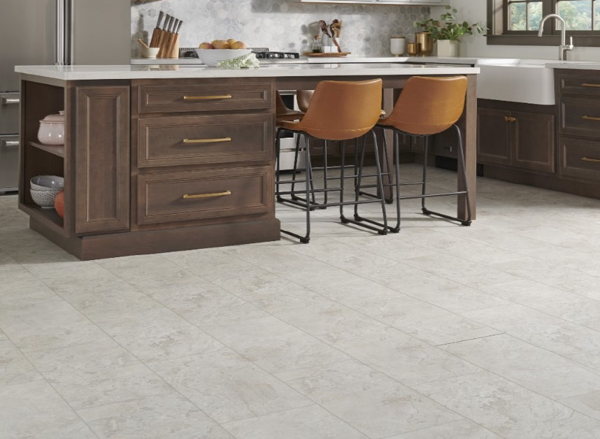 LVT excels at replicating the sophisticated appearance of natural stone, ceramic, and porcelain tiles, offering the timeless appeal of these materials without their inherent drawbacks like cold surface temperature and installation complexity.