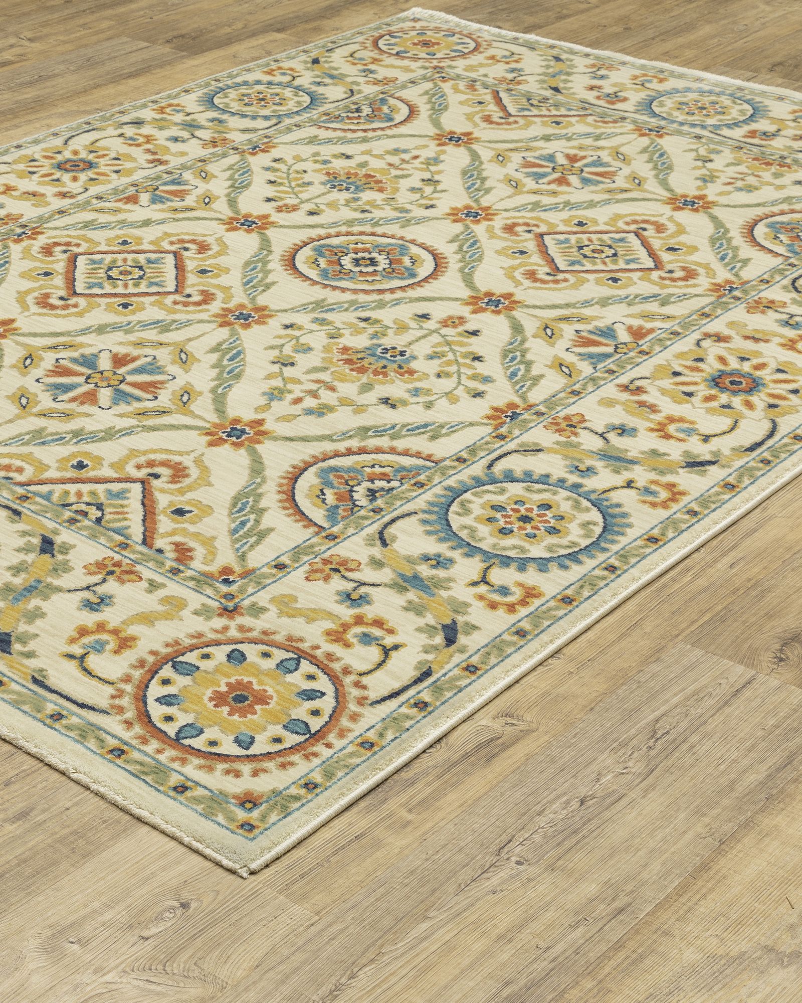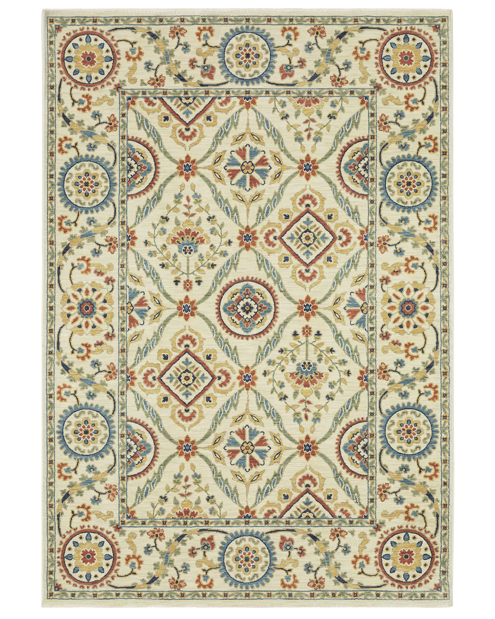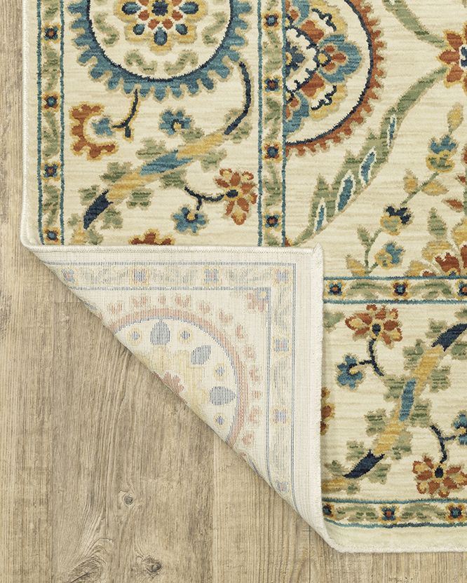 | Description | The Francesca fr07a Ivory/Multi Area Rug collection features softened jewel tones of sapphire and turquoise, muted gold, and cinnabar alongside nature-inspired neutrals and an earthy brown and green. It is power-loomed of space dyed, super soft polypropylene. Francesca showcases updated traditional patterns highlighting open fields, updated borders, and some folk-art flair. By Oriental Weavers. |