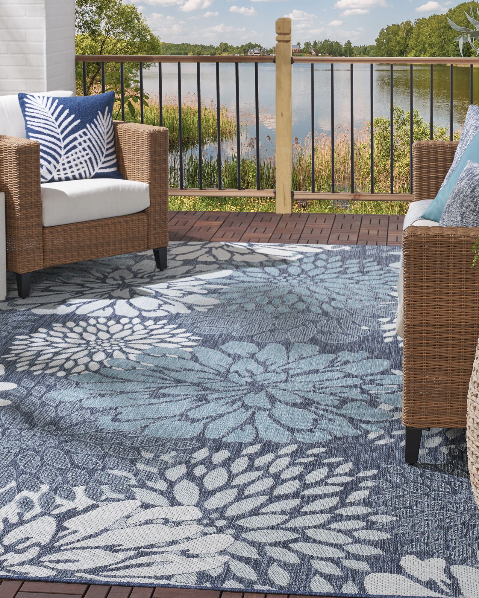 Tropical with a touch of modern, the Nourison Garden Oasis GOA06 Navy Area Rug Collection of outdoor rugs transforms any space into a breezy retreat. With a modern color palette and low-maintenance construction, these flat weave rugs are built for performance but don’t sacrifice style. The lightweight construction lays flat quickly and doesn’t shed, so you can spend less time waiting for your space to come together and get right to relaxing with friends and family. Bring nature’s charm to your favorite areas with this navy-blue floral outdoor rug from the Garden Oasis collection. Featuring oversized blooms in a monochromatic palette, this flatweave rug offers a fresh update for your patio, porch, or balcony. This versatile rug is easy to roll out and clean, making it ideal for indoor spaces like the living room, dining room, and kitchen as well.
