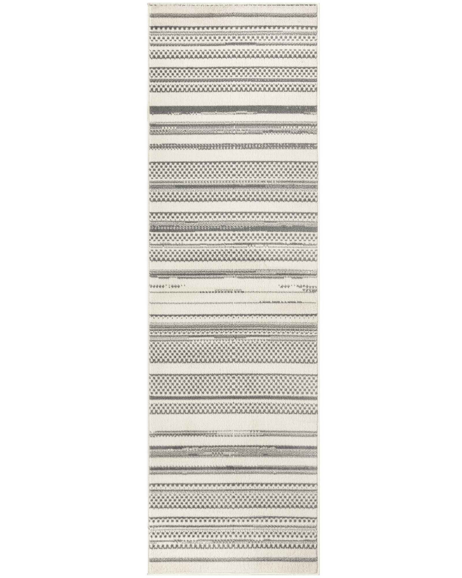 Beautifully bold and gorgeously graphic, the Grafix GRF41 Ivory Grey Collection of area rugs from Nourison is destined to deliver a transfixing touch of dramatic appeal to any room. Available in an enthralling array of contemporary color palettes and power-loomed from long-lasting, easy-care polypropylene, each exciting rug is all about outstanding ease and sensational style. For the modern maximalist, this abstract striped rug from the Grafix Collection adds bold pattern to your space. The combination of solid stripes, checkered blocks, and lightly distressed lines creates visual interest when added to your kitchen, entryway, bedroom, or living room decor. Machine-made from durable polypropylene yarns that are easy to maintain – great for busy households with pets, young kids, and frequent guests.