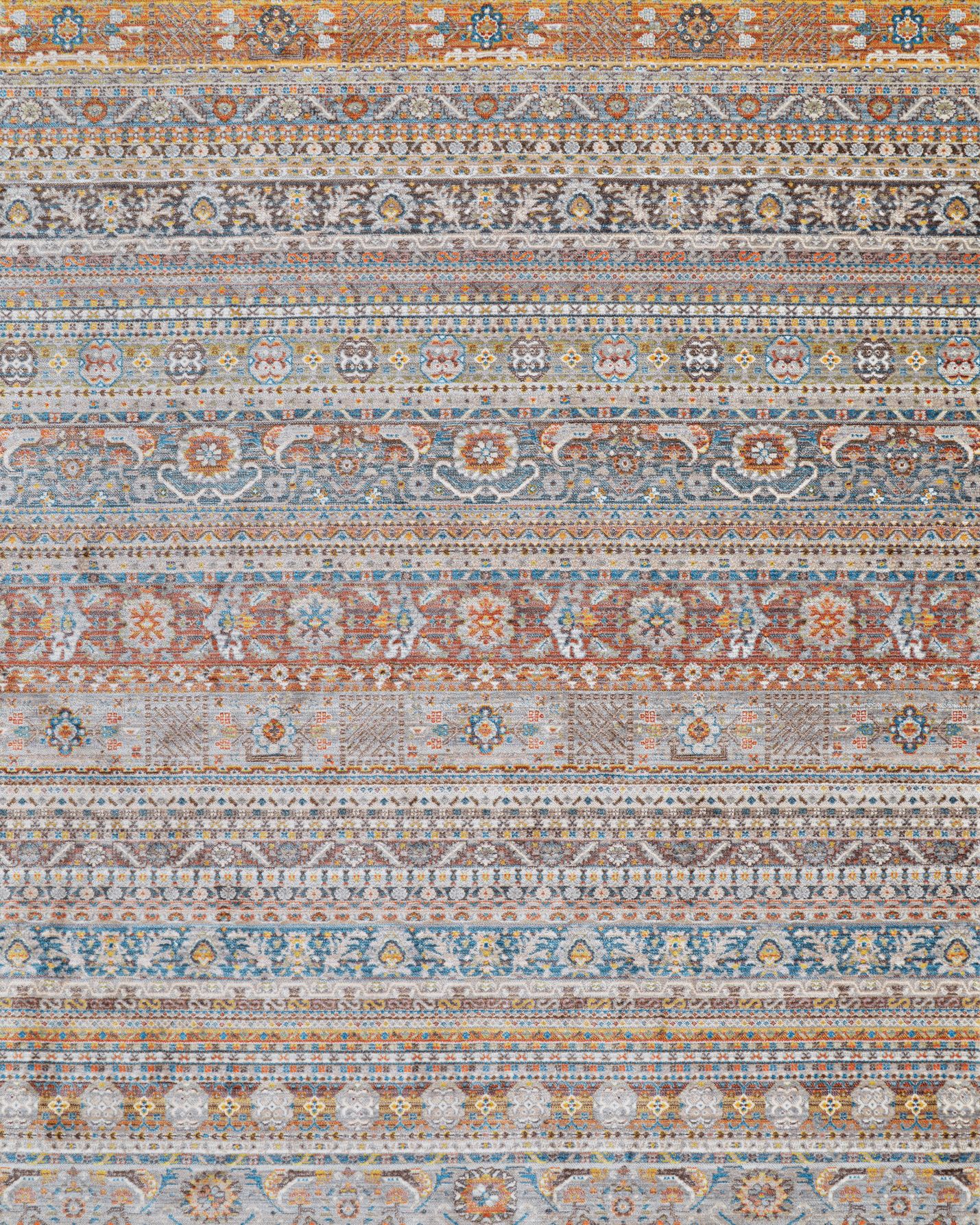 An ideal interpretation of affordable luxury, the Couristan Halli Bokhara Stone Brick Area Rug Collection offers a series of colorful transitional area rugs that were designed for today's living spaces. Showcasing rich details and a soft surface that is virtually unmatched, Halli is cross-woven on Wilton looms. This unique weaving technique allows for the use of up to 72 colors per area rug, allowing for Halli's range of deep, vibrant hues to blend together to create a fashionable look that is nothing less than dramatic. The collection's pile features a 100% modified polyester fiber, and offers 500,00 points of yarn per square meter, resulting in a durable pile that replicates the look of a handmade area rug. Each Halli design features a cotton backing for added softness to its underfoot as well as short antique fringe for authenticity. Halli's soft pile, fusion of colors and modern classic designs will provide the perfect element of design to those living spaces that require an eclectic foundation.