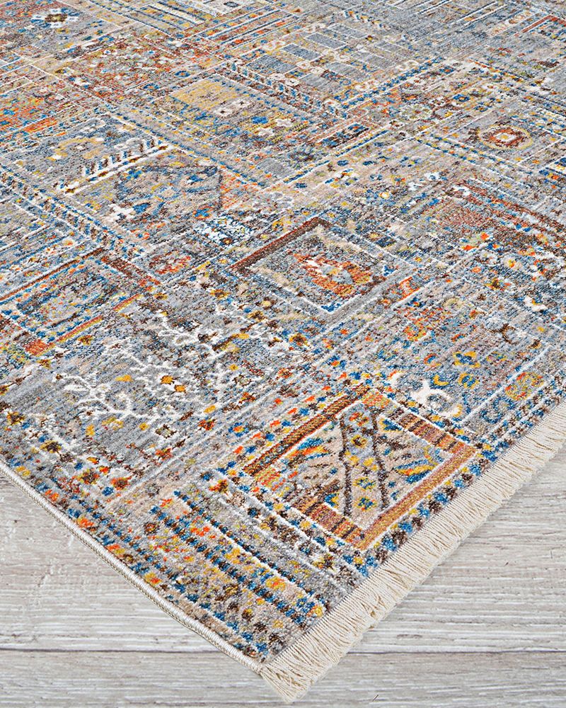 An ideal interpretation of affordable luxury, the Couristan Halli Persian Panel Skyblu Stone Area Rug Collection offers a series of colorful transitional area rugs that were designed for today's living spaces. Showcasing rich details and a soft surface that is virtually unmatched, Halli is cross-woven on Wilton looms. This unique weaving technique allows for the use of up to 72 colors per area rug, allowing for Halli's range of deep, vibrant hues to blend together to create a fashionable look that is nothing less than dramatic. The collection's pile features a 100% modified polyester fiber, and offers 500,00 points of yarn per square meter, resulting in a durable pile that replicates the look of a handmade area rug. Each Halli design features a cotton backing for added softness to its underfoot as well as short antique fringe for authenticity. Halli's soft pile, fusion of colors and modern classic designs will provide the perfect element of design to those living spaces that require an eclectic foundation.