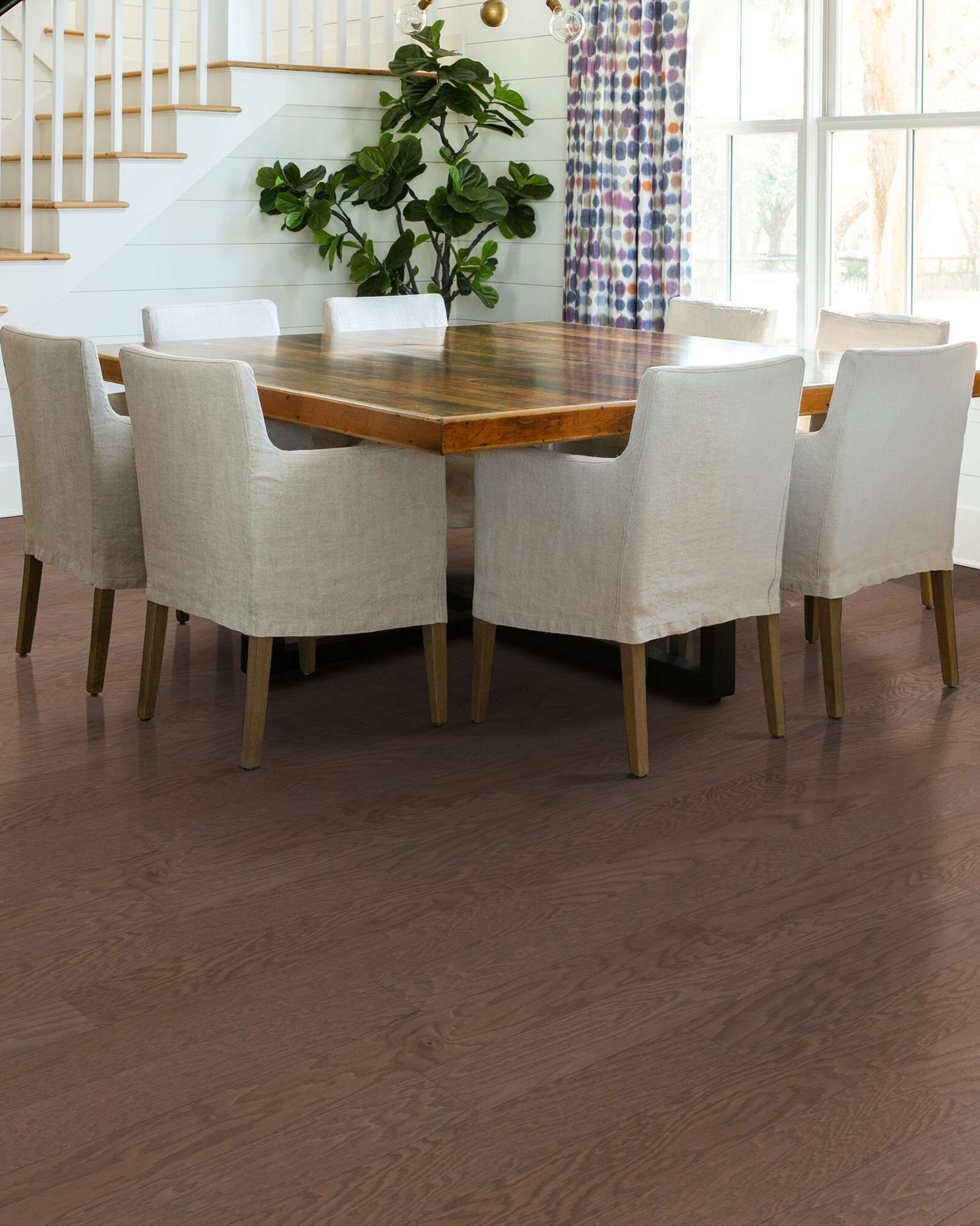 | Description | Achieve a classic look with the Shaw Albright Oak 5" Flax Seed Lg Hardwood Collection. This engineered medium brown red oak wood flooring has a high color variation, a smooth surface texture, and a ScufResist Platinum finish. |