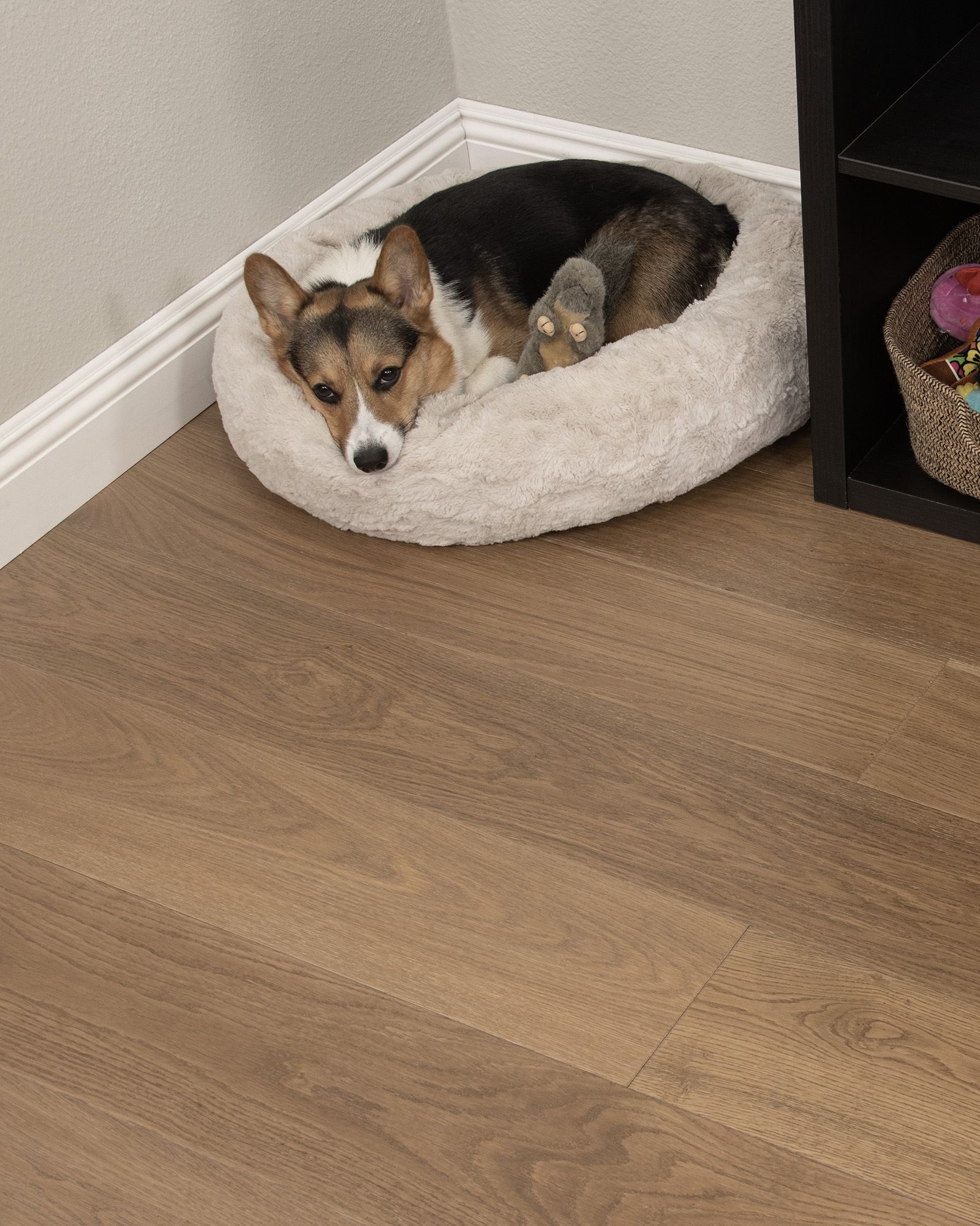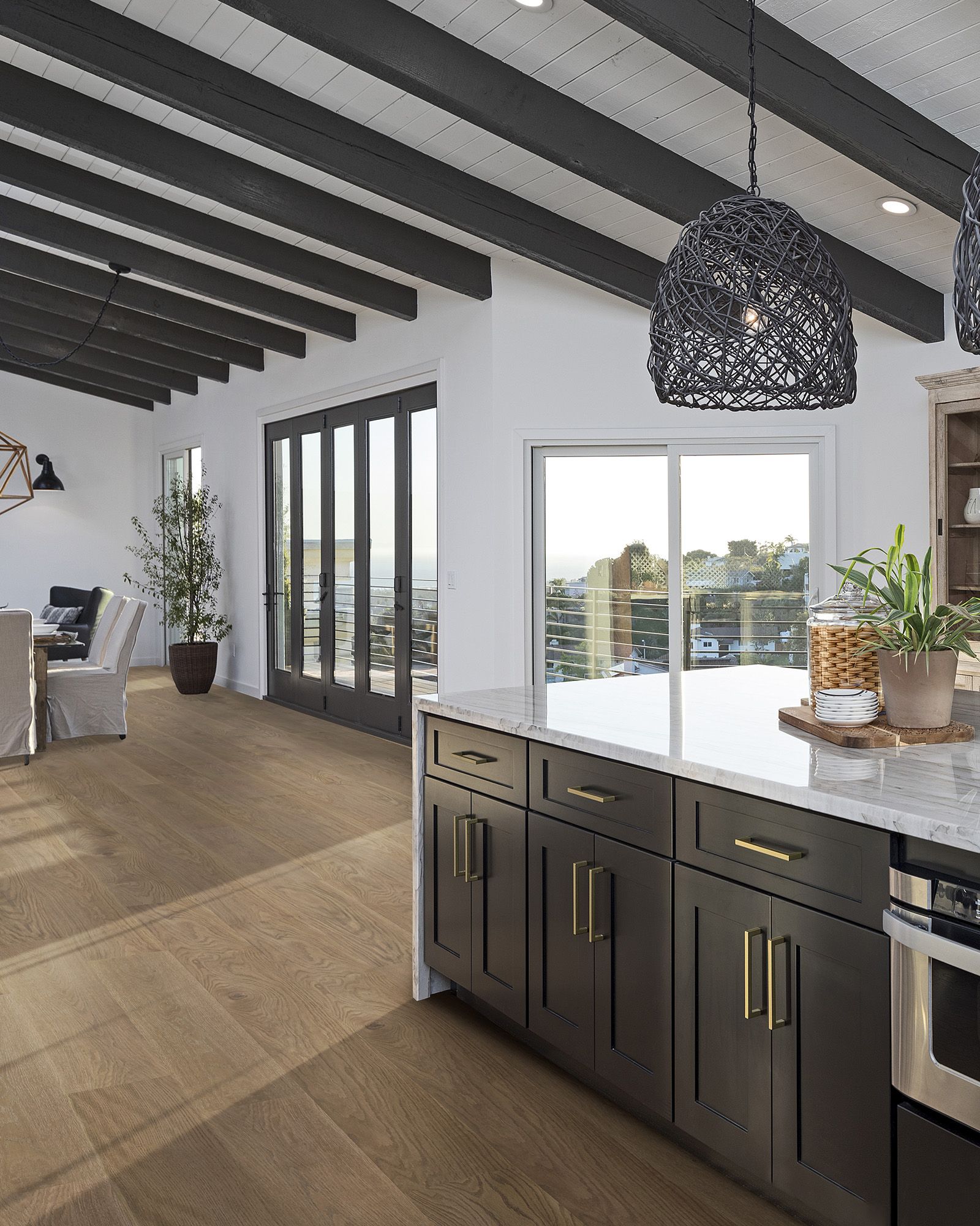 Blending the current with classic, CALI Hardwoods Barrel Cava Cove Collection delivers timeless shades of hardwood, presented with signature CALI style. Engineered planks feature a 2mm thick beauty layer of European white oak stabilized by a sustainable acacia wood core. Using this fast-growing timber for the core allows plank to be more dimensionally stable and get 4x as much flooring from each oak tree. It offers an array of light, natural tones and clean, smooth grains, for a fresh palette designed to make spaces feel modern, open, and airy. Barrel planks are protected by a robust, scratch-resistant aluminum oxide finish, keeping them simple to clean and pet-friendly.