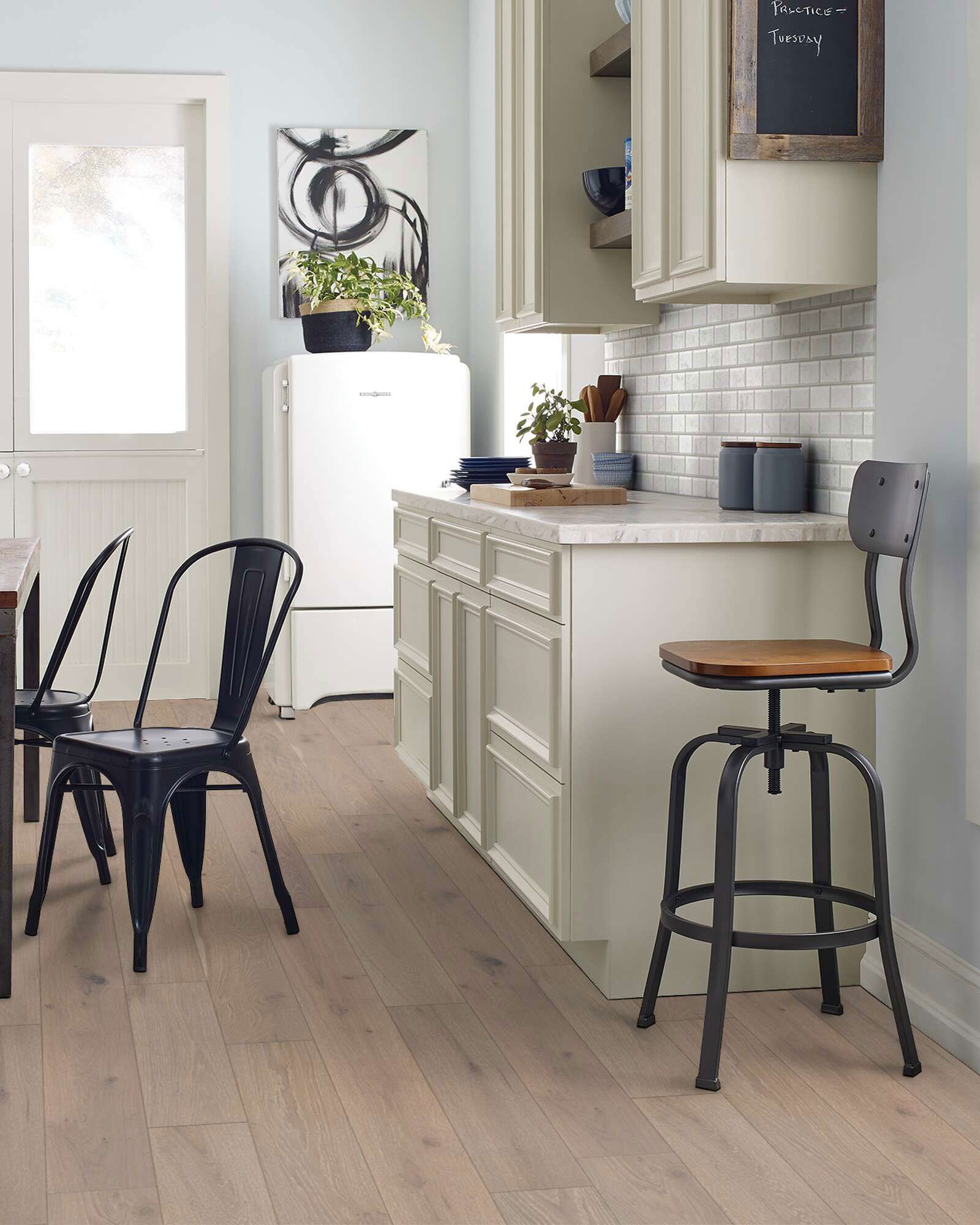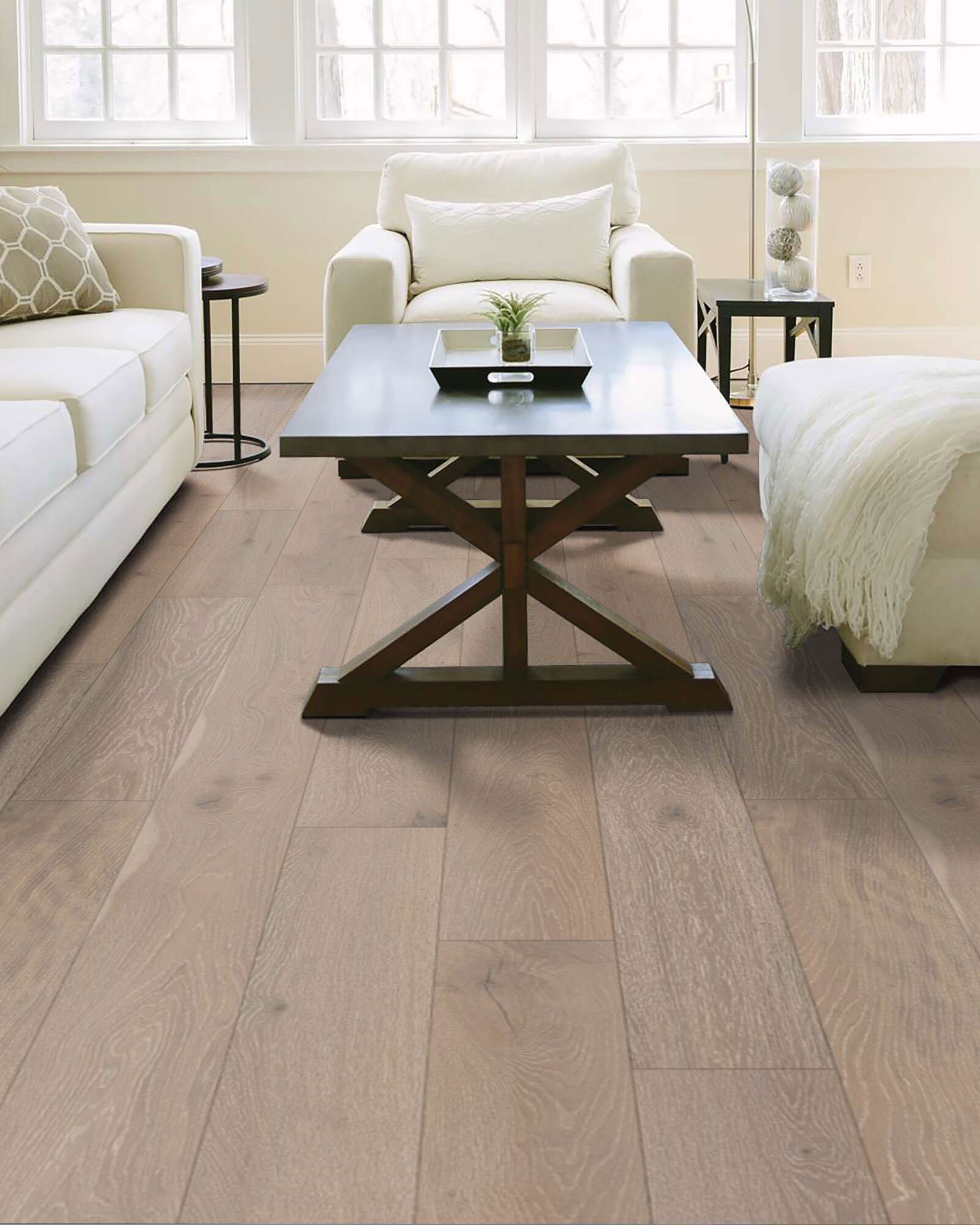 The Shaw SW485 Castlewood Oak Knight Collection is visually rich with the beautiful knots, mineral streaks and natural splits seen in heirloom hardwood. Heightening its appeal is a very low-gloss finish, which calls to mind vintage European oil-rubbed floors. Castlewood Oak is hand selected by design experts to bring the natural artistry of hardwood into your home. The clean look and understated finishes let the beauty of the wood shine through for a timeless look that ages gracefully. It can be installed at all surface levels using a variety of installation methods such as nail, staple, glue or floating.