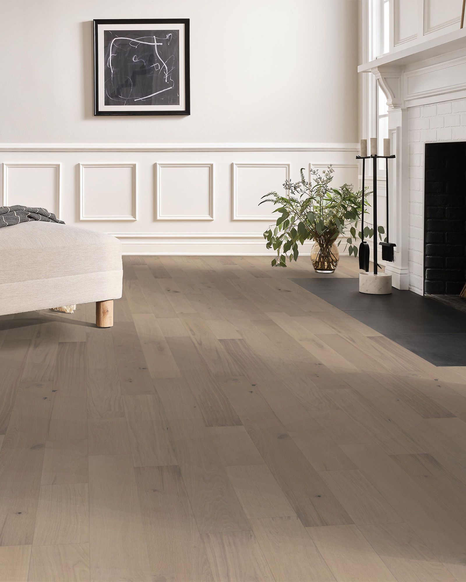 | Description | Serene tones and time worn textures elevate the character of this Anderson Tuftex Coast To Coast Sandbar European Oak hardwood. Every 7.5-inch plank is carefully brushed, painted, then sanded to achieve a crafted finish with the natural essence of weathered painted wood. It has a high color variation and micro bevel edges. This durable hardwood can be installed at any grade using a variety of methods including nail, staple, glue or floating. |