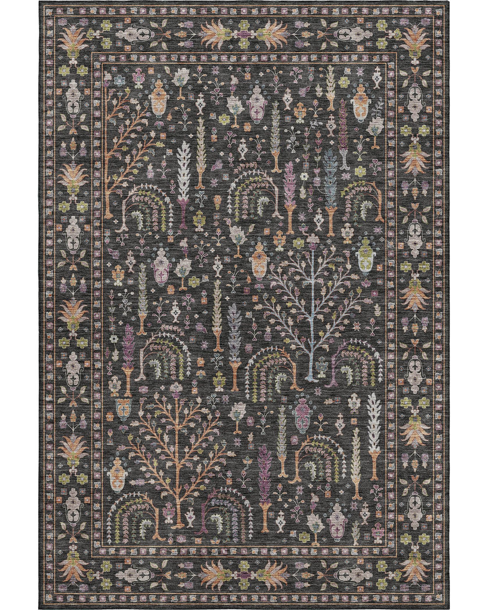 The Dalyn Hatay HY5 Black Area Rug Collection is your invitation to luxury and convenience with the Luxury Washables collection, crafted for those who appreciate the finer things in life but refuse to be burdened by them. This collection is thoughtfully designed to cater to a sophisticated yet active lifestyle. Our rugs, constructed from the softest 100% polyester microfiber and backed with premium non-skid material, promise both safety and a plush feel. Finished in the USA from the finest foreign materials and by superior domestic labor, this machine-washable set is the perfect blend of family and pet-friendly luxury, ensuring that style and ease go hand-in-hand in your home.