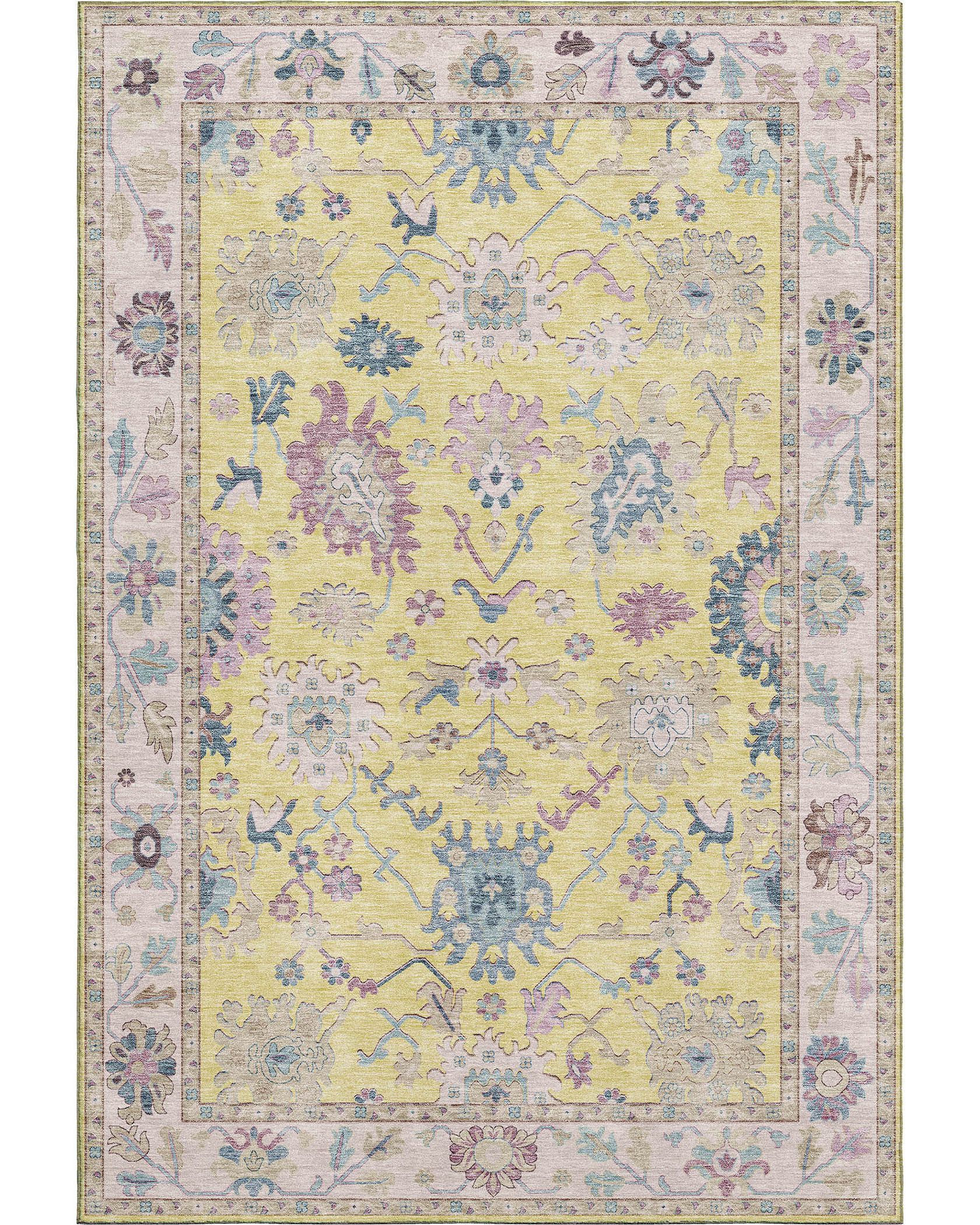 The Dalyn Hatay HY7 Yellow Area Rug Collection is your invitation to luxury and convenience with the Luxury Washables collection, crafted for those who appreciate the finer things in life but refuse to be burdened by them. This collection is thoughtfully designed to cater to a sophisticated yet active lifestyle. Our rugs, constructed from the softest 100% polyester microfiber and backed with premium non-skid material, promise both safety and a plush feel. Finished in the USA from the finest foreign materials and by superior domestic labor, this machine-washable set is the perfect blend of family and pet-friendly luxury, ensuring that style and ease go hand-in-hand in your home.