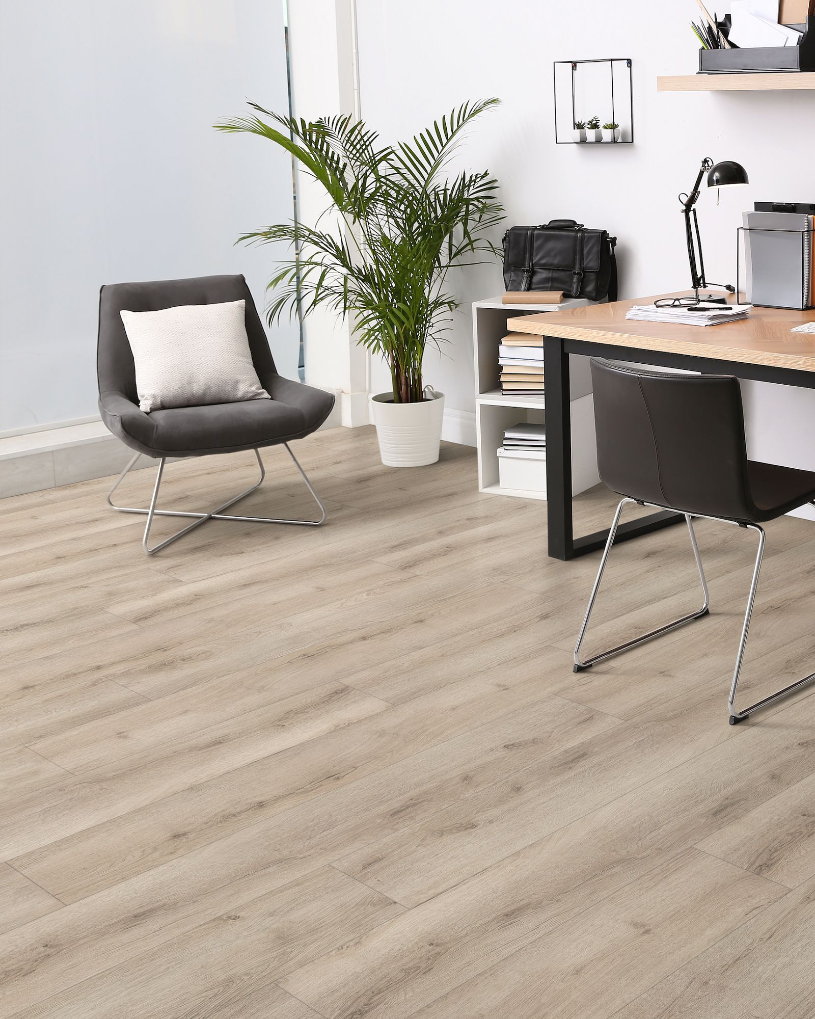 Step into lasting comfort and style with the Shaw Homeward Cashmere Grey 9"x60" Luxury Vinyl Tile Residential Resilient LVT Loose Lay flooring. Designed in 9in x 60in wide planks, this luxury vinyl flooring combines modern hardwood looks with the everyday performance of resilient vinyl. Built with a 5mm overall thickness and a 20 mil wear layer, Homeward offers excellent protection against scratches, stains, and daily wear with its ScuffResist finish. The accent bevel edges add realistic dimension, while the innovative loose lay installation makes setup quick and simple - no glue required. Backed by a lifetime residential warranty, Homeward flooring is waterproof, easy to maintain, and built to bring timeless durability and beauty into your home.