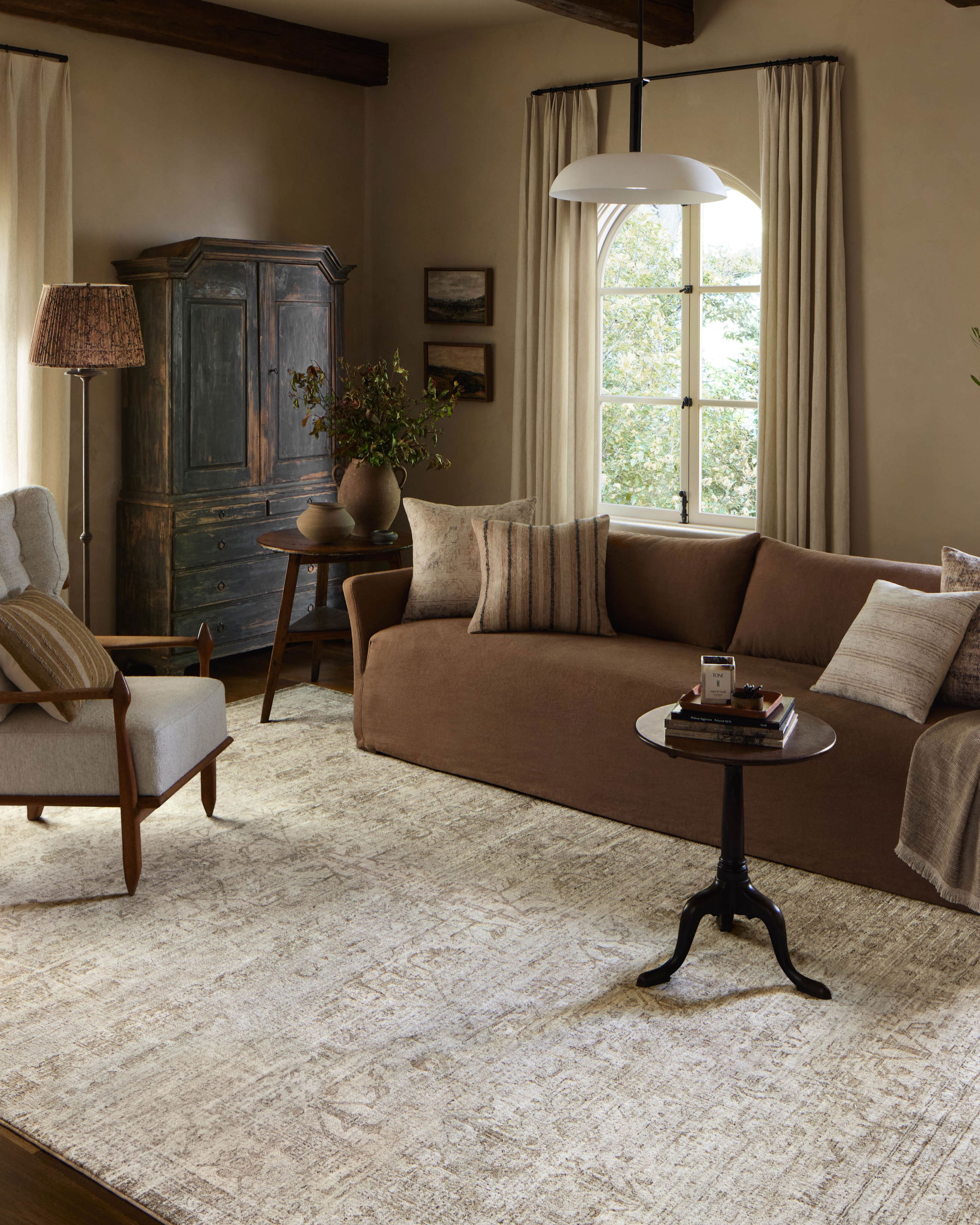 The Honora HON-01 Ivory/Natural Collection by Amber Lewis x Loloi combines vintage-inspired motifs with warm, inviting colors that can work in a range of homes. Intentional distressing gives the rugs that lived-in, relaxed aesthetic that Amber is known for, and allows the pattern to pair well with other textures in the room. Honora is power-loomed of 100% polyester in Turkey for a soft, velvety feel and low maintenance durability. This collection is OEKO-TEX certified, ensuring its materials don't contain harmful substances.