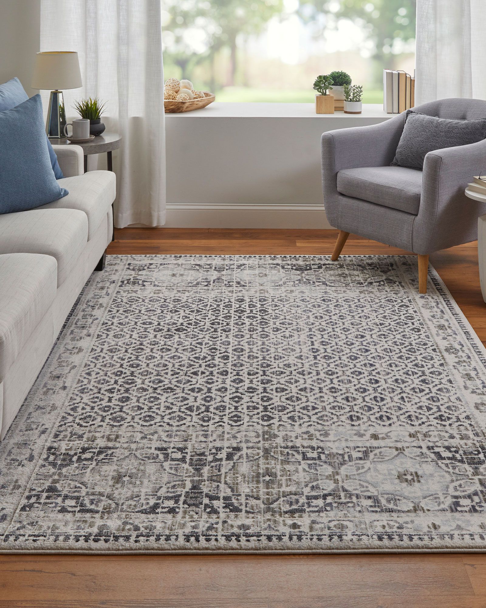 | Description | Power loomed in a polypropylene and polyester blend, the Kano 3874F Ivory/Taupe/Gray Area Rug Collection showcases an on-trend distressed finish. The poly-blend is naturally stain and fade resistant while also being water resistant as well which weathers well if you have pets or host frequently. With classic colors of beige, ivory, and accents of black and grey, this rug is extremely versatile. |