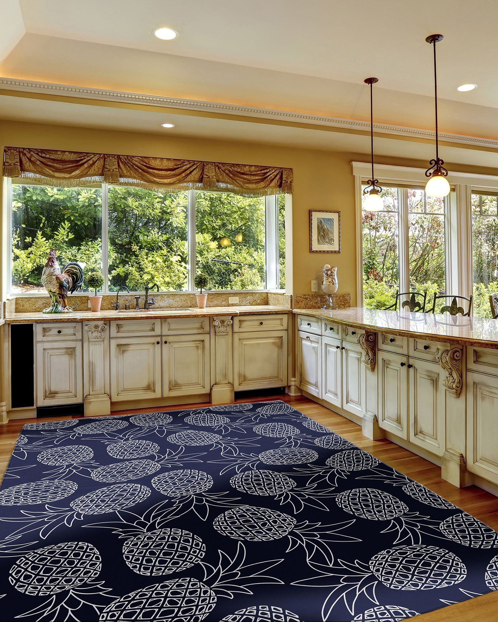 | Description | The Dalyn Kendall KE6 Navy rugs are perfect for kitchens or dining rooms with their incredibly detailed motifs. Not only are they stylish, but they're also easy to care for. With a UV stabilized indoor/covered outdoor design, they're able to withstand the elements while maintaining their beautiful appearance. The 100% polyester flat woven construction includes an incorporated non-skid backing for added safety. These rugs are crafted in the USA using state-of-the-art prismatic color processing technology to ensure that the colors are vibrant and long-lasting. Overall, these rugs are a great choice for anyone looking to add a touch of style and functionality to their living space. |