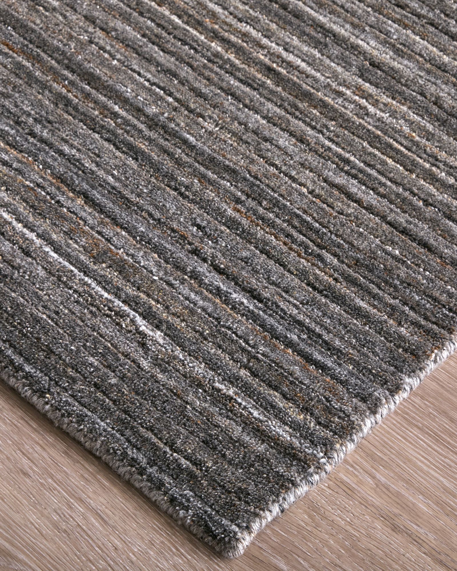 The hand-loomed Feizy Lakewood 8A23F Black/Gray/Brown 10'x14' Area Rug Collection from India, crafted with eco-friendly PET yarn, feature a cut and loop pile with a soap-washed finish for a textured, sophisticated look. Available in beige, brown, charcoal, gray, ivory, and navy, they boast a transitional style with fine linear patterns that suit both modern and classic interiors. The cut and loop pile offer a plush feel and durability, while the PET material ensures stain resistance and easy maintenance. Ideal for high-traffic areas, these rugs combine sustainability, comfort, and timeless design versatility.